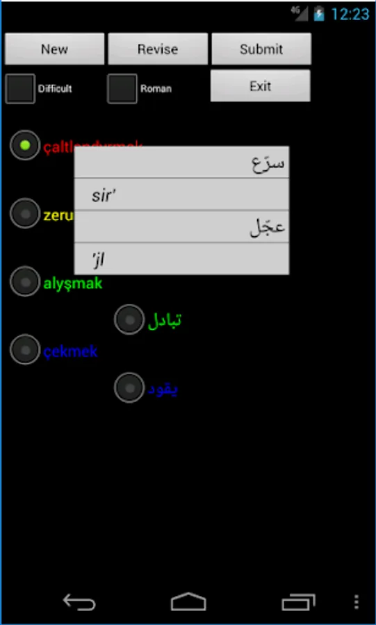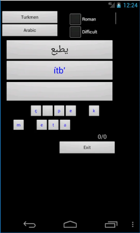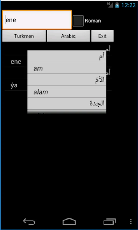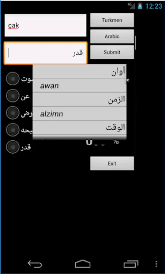 Turkmen Arabic Dictionary - travel dictionary to translate Turkmen to Arabic displaying a list of words in Arabic. The dictionary also translates from Arabic to Turkmen. Copying a word from the translated list for a reverse translation can be used to find synonyms and to understand the broader use of the Arabic word in the Turkmen language. Although the Turkmen Arabic dictionary does not provide definitions or examples, the use of the translation software in this way provides you with a mechanism to better understand Arabic words in the Turkmen context without the need for definitions.