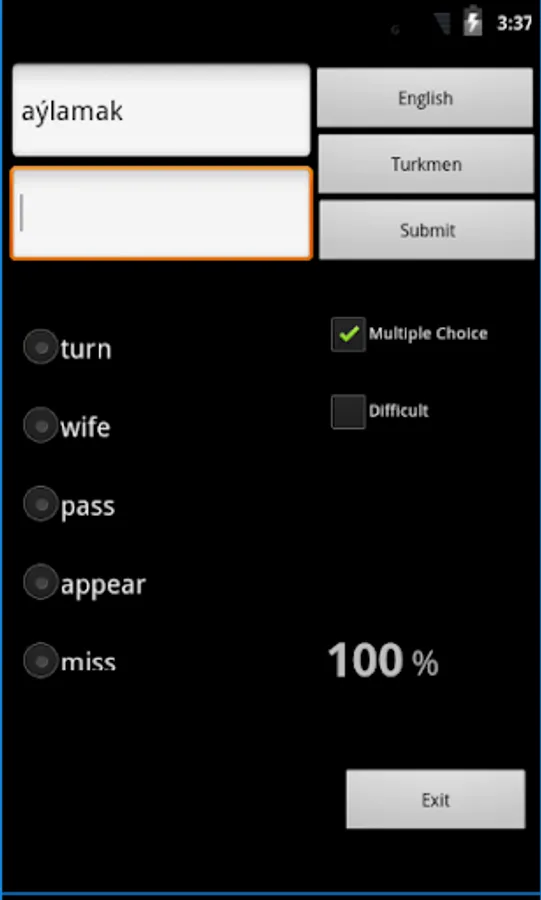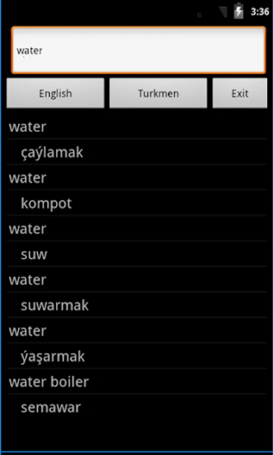 Turkmen English Dictionary - travel dictionary to translate Turkmen to English.Copying a word from the translated list for a reverse translation can be used to find synonyms and to understand the broader use of the word. Although the dictionary does not provide definitions or examples, the use of the translation software in this way provides you with a mechanism to better understand English words in the Turkmen context without the need for definitions.