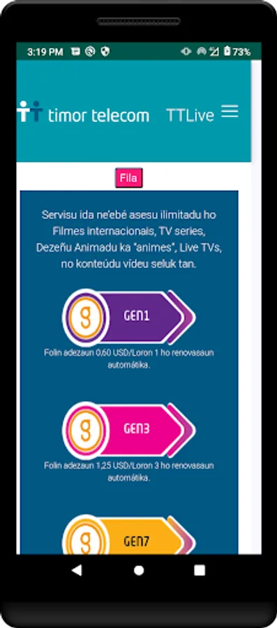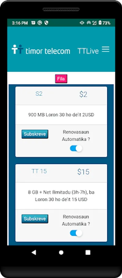 Through this App. you can do all the activities that you need to do in your daily routine and be updated with all the Campaigns and the Promotional Packages to the mobile pre-paid users of Timor Telecom.