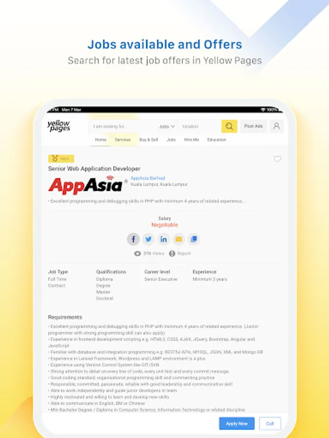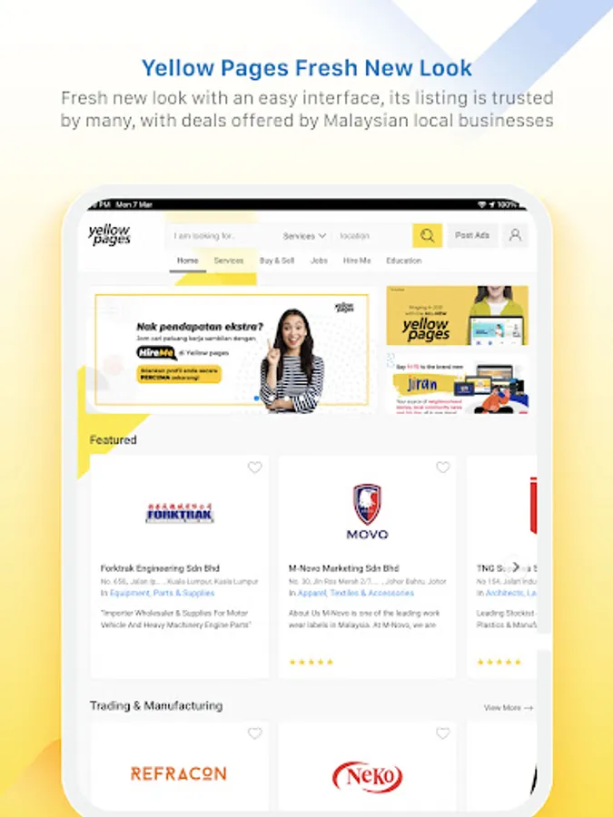 For your complete directory search needs. The power of the Yellow Pages Malaysia search engine is now available at your fingertips – anytime, anywhere. Experience a brand new customizable search that has been optimized for mobile.