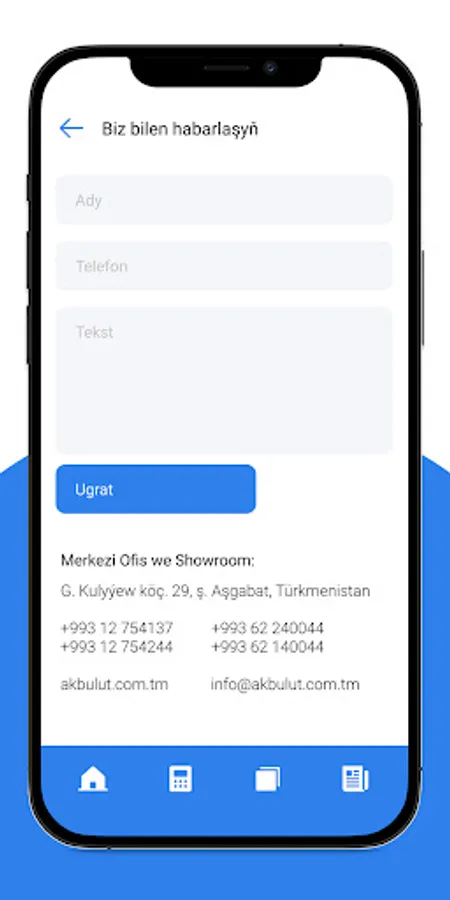 Programmada, “Ak Bulut” Hojalyk Jemgyýetiniň önümleriniň katalogy we habarlaşmak üçin maglumatlary ýerleşdirilen.