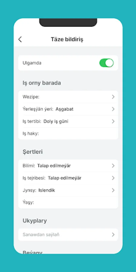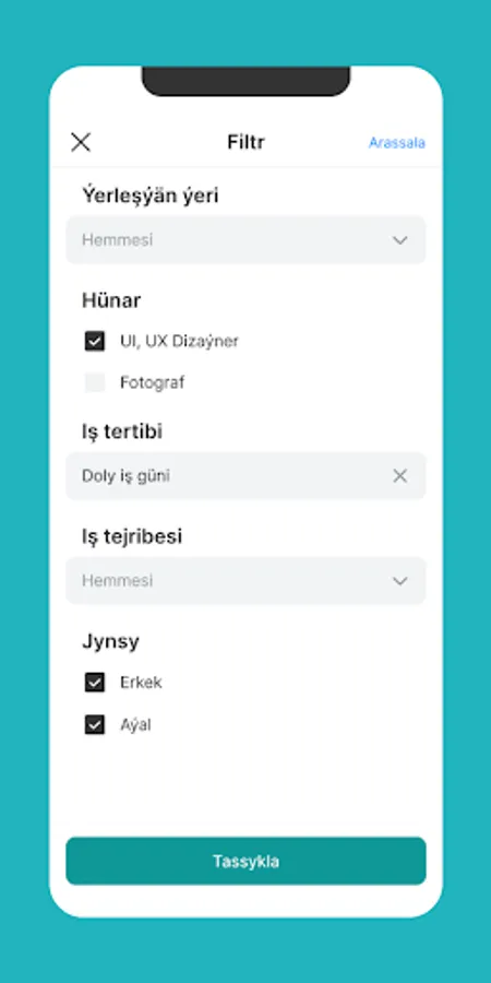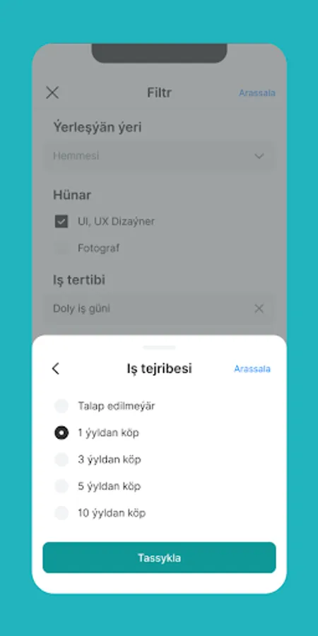 • Işleri aýlyk, tejribe derejesi we beýleki kriteriýalar boýunça filtrläň.