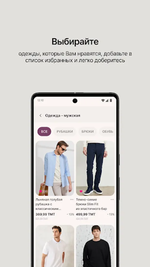 ● Одежда для мужчин: куртки, футболки, джинсы, рубашки, пиджаки, костюмы, футболки-поло, шорты, носки, нижнее белье, обувь и сумки;