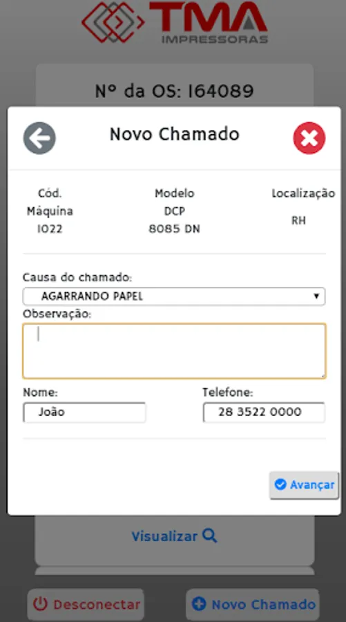 Application for customers of TMA Printers, used for opening of calls and consultation of open calls.