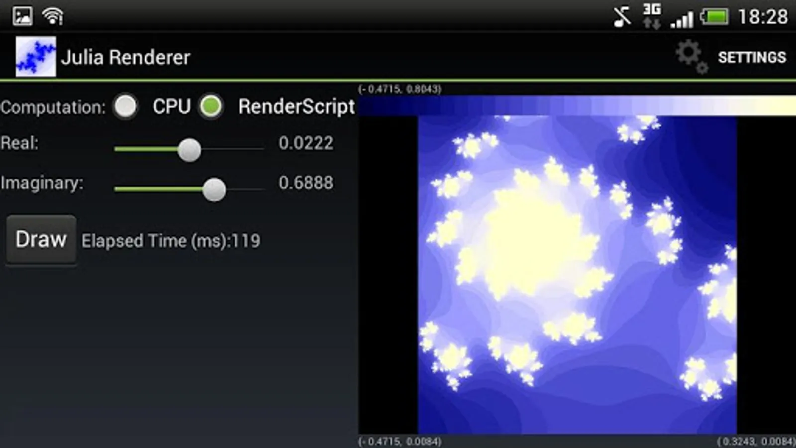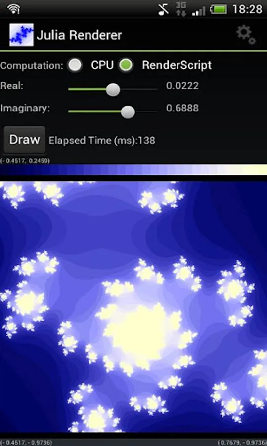 This application draws Julia set, very similar to Mandelbrot set, a kind of fractal.