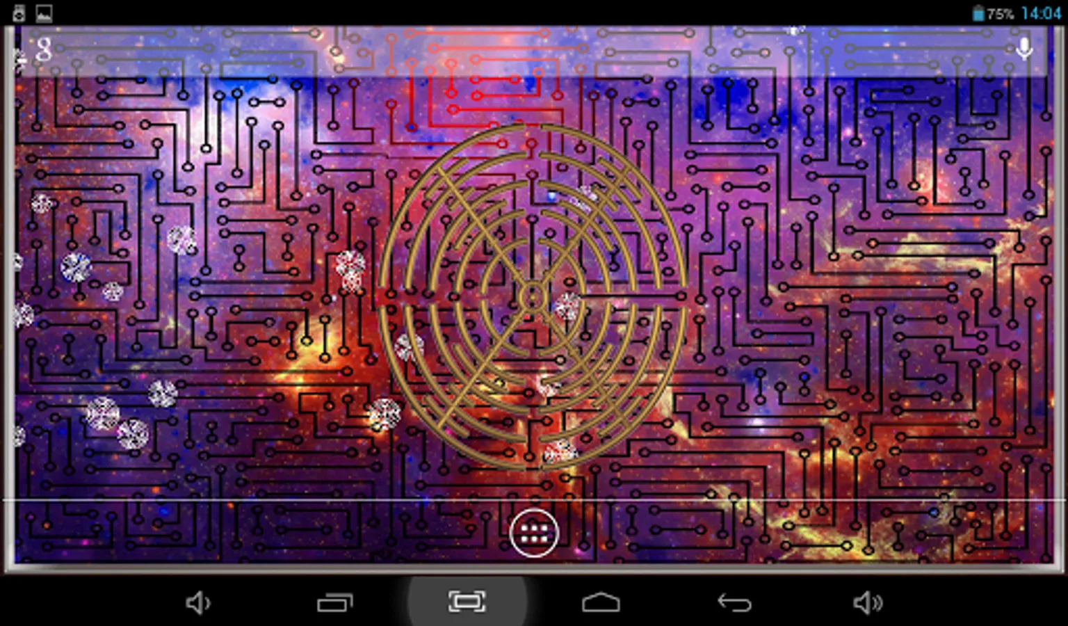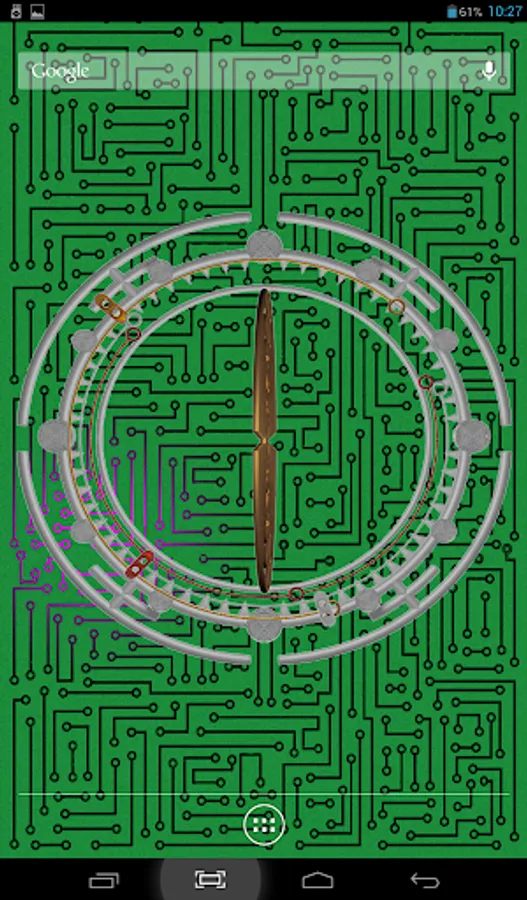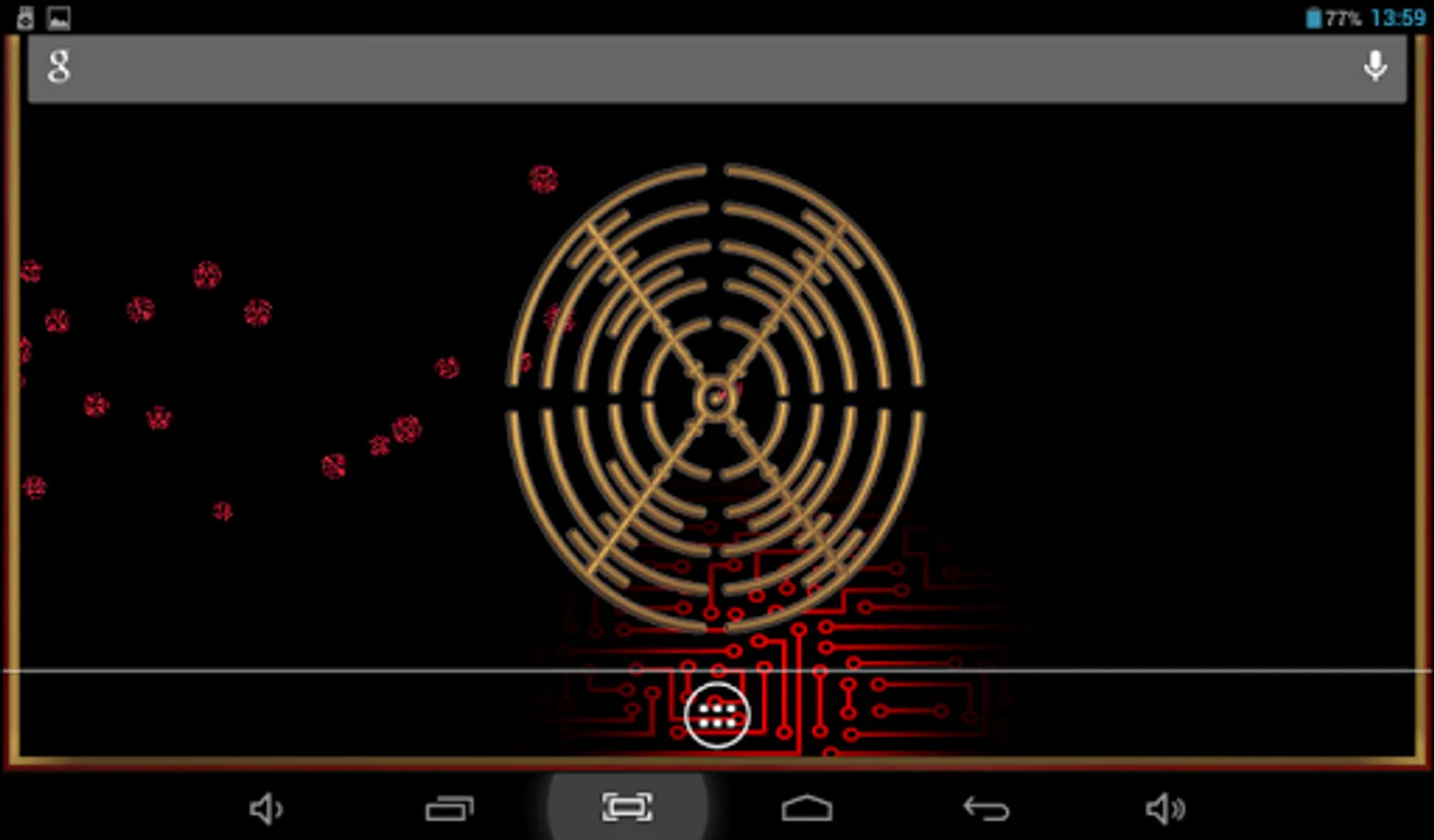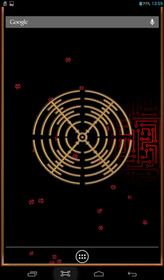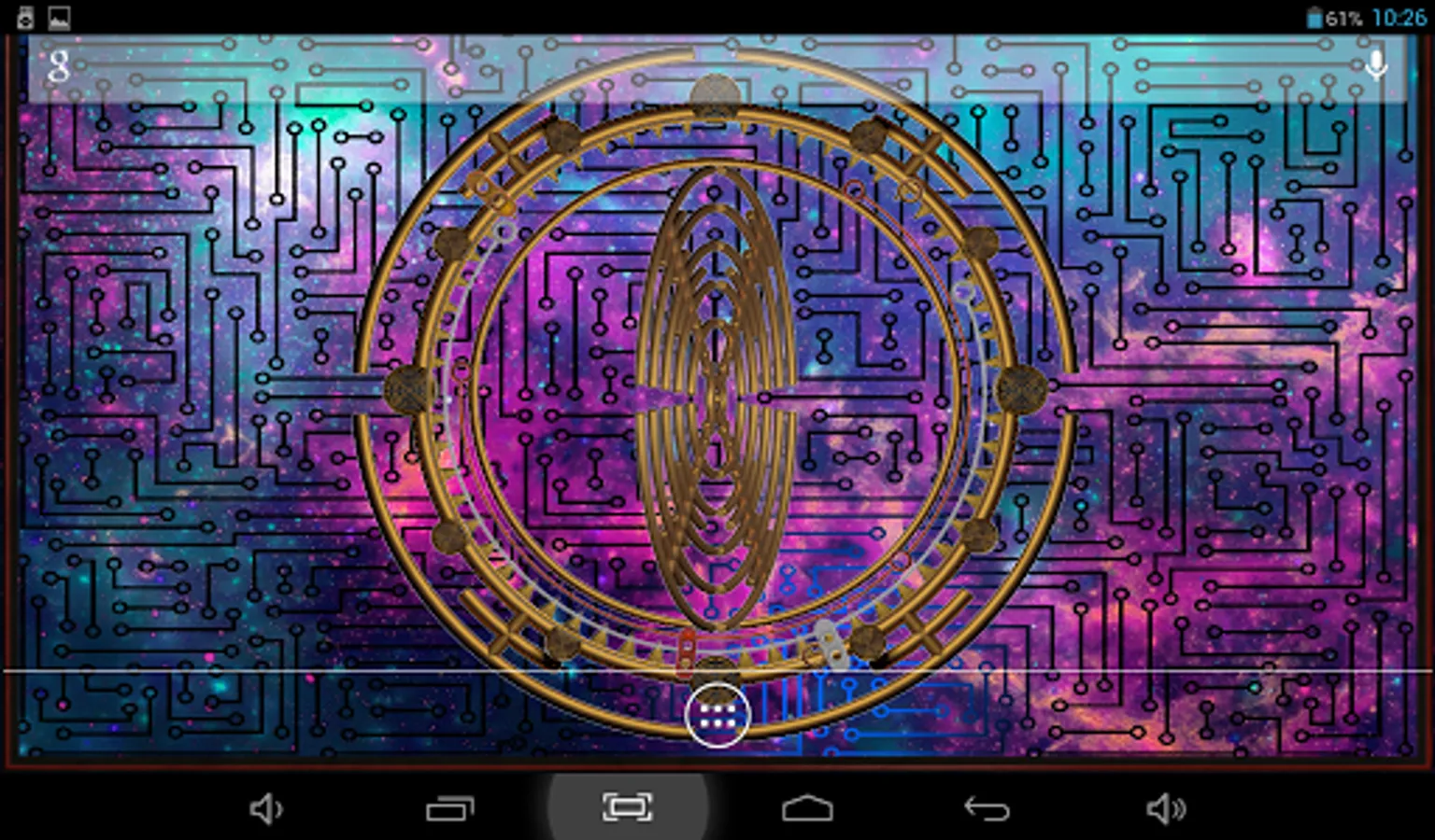 Golden disk rotating on 360 degrees, rotating backlights and flying particles above. You can choose background color, color of backlights, color, quantity and size of dust particles flying above, type of frame to customize your live wallpaper. Beautifull and original!