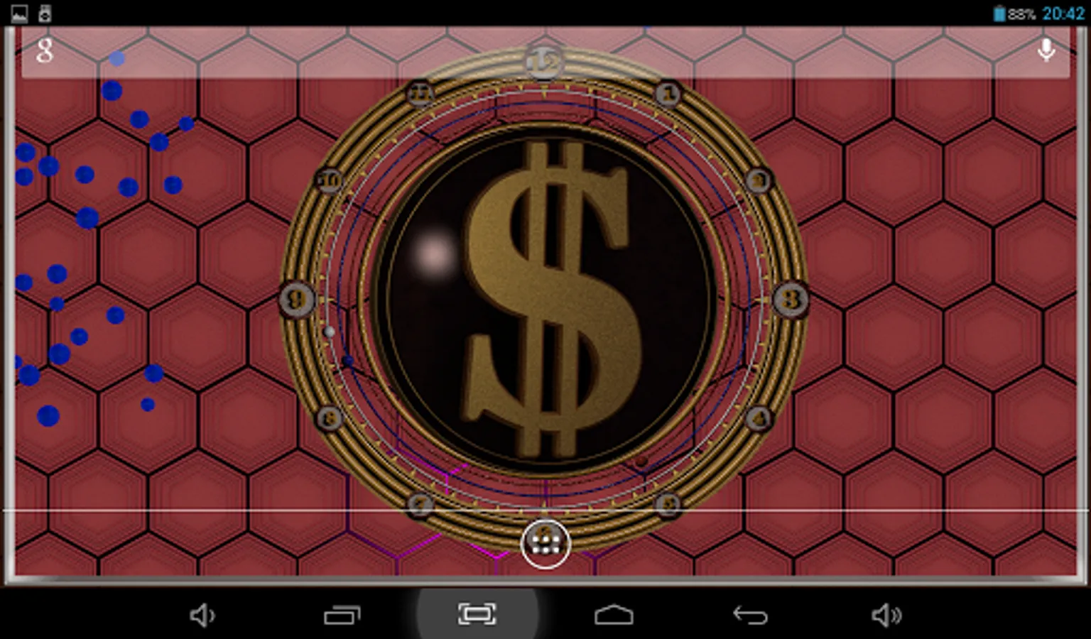 Variability of the background color, the ability to change back lights color, the color and the size and number of the dust particles, flying in the background, ability to change type of frame, two models of dust particles behavior, original clock. Cool and beautiful!