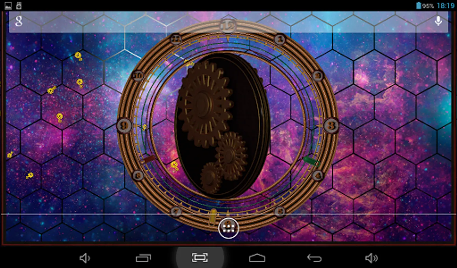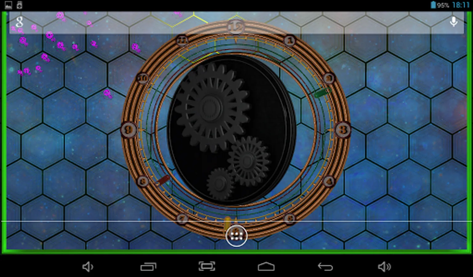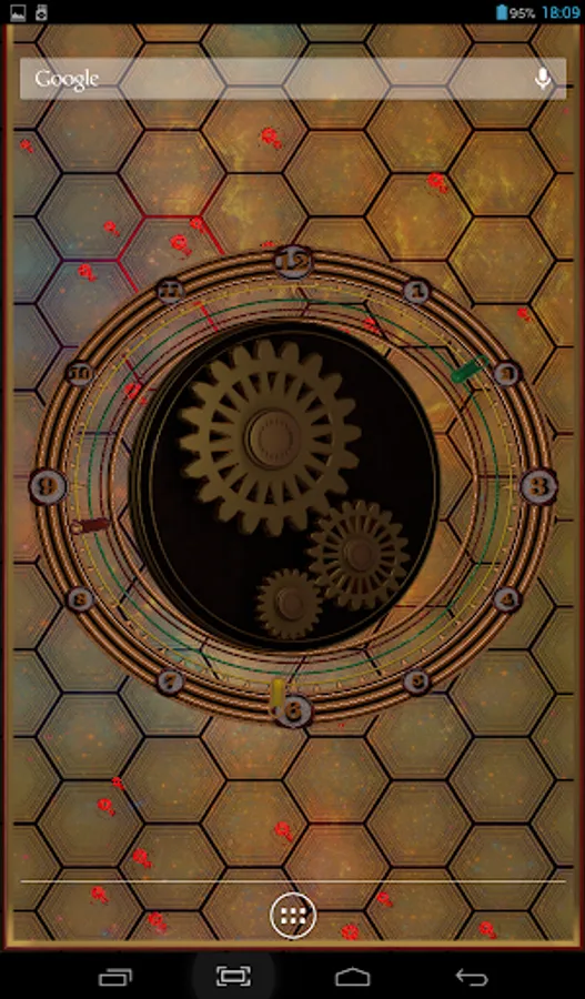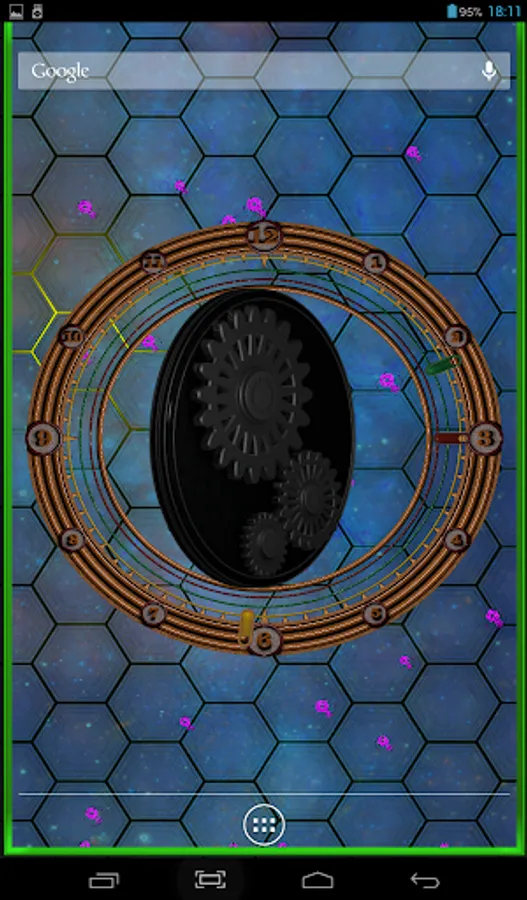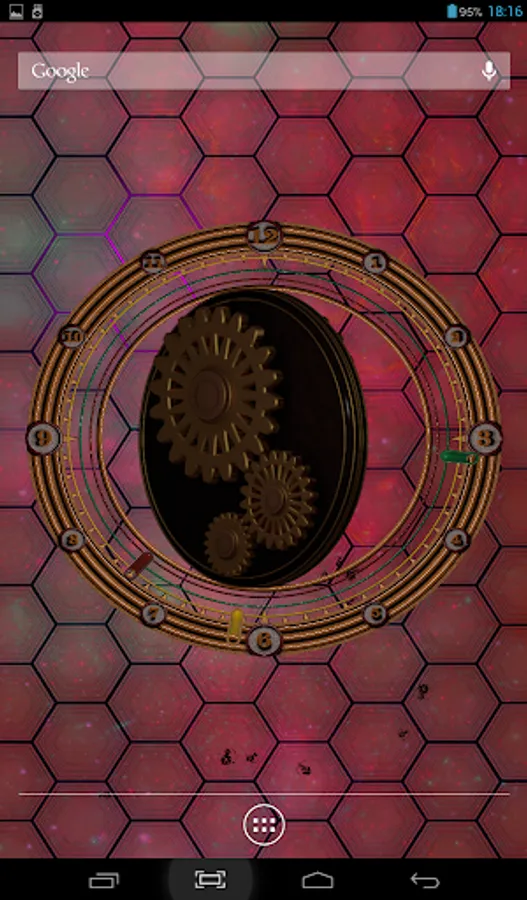 Rotating gears, original clock, different types of backgrounds and back lights and dust particles flying above. You can choose color of background, color of backlights, number, size and color of dust particles, which also have two types of behaviour. cool and beautiful.
