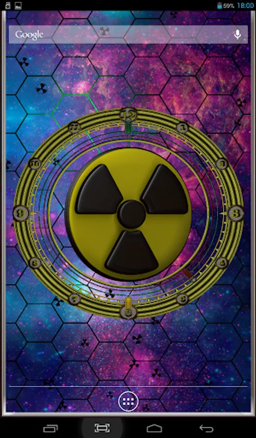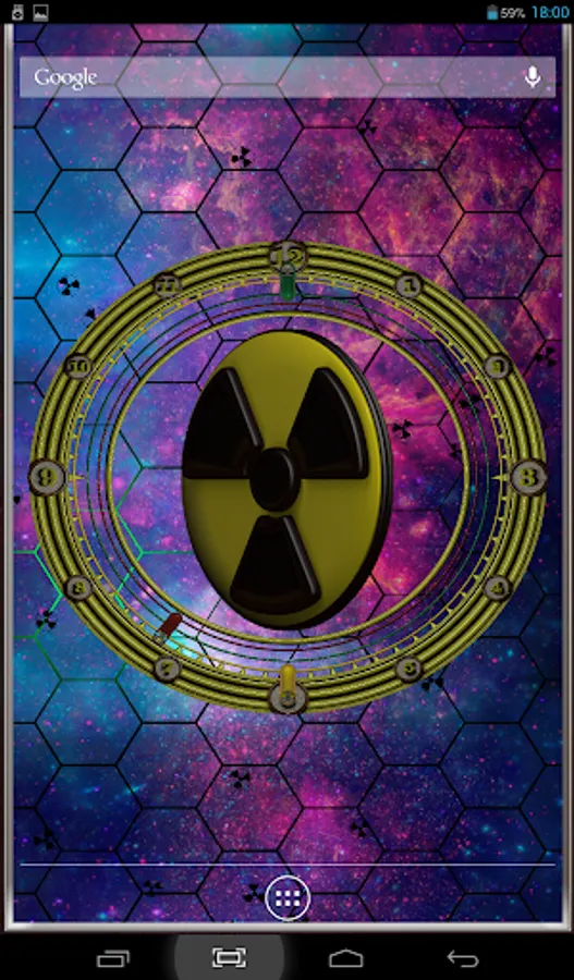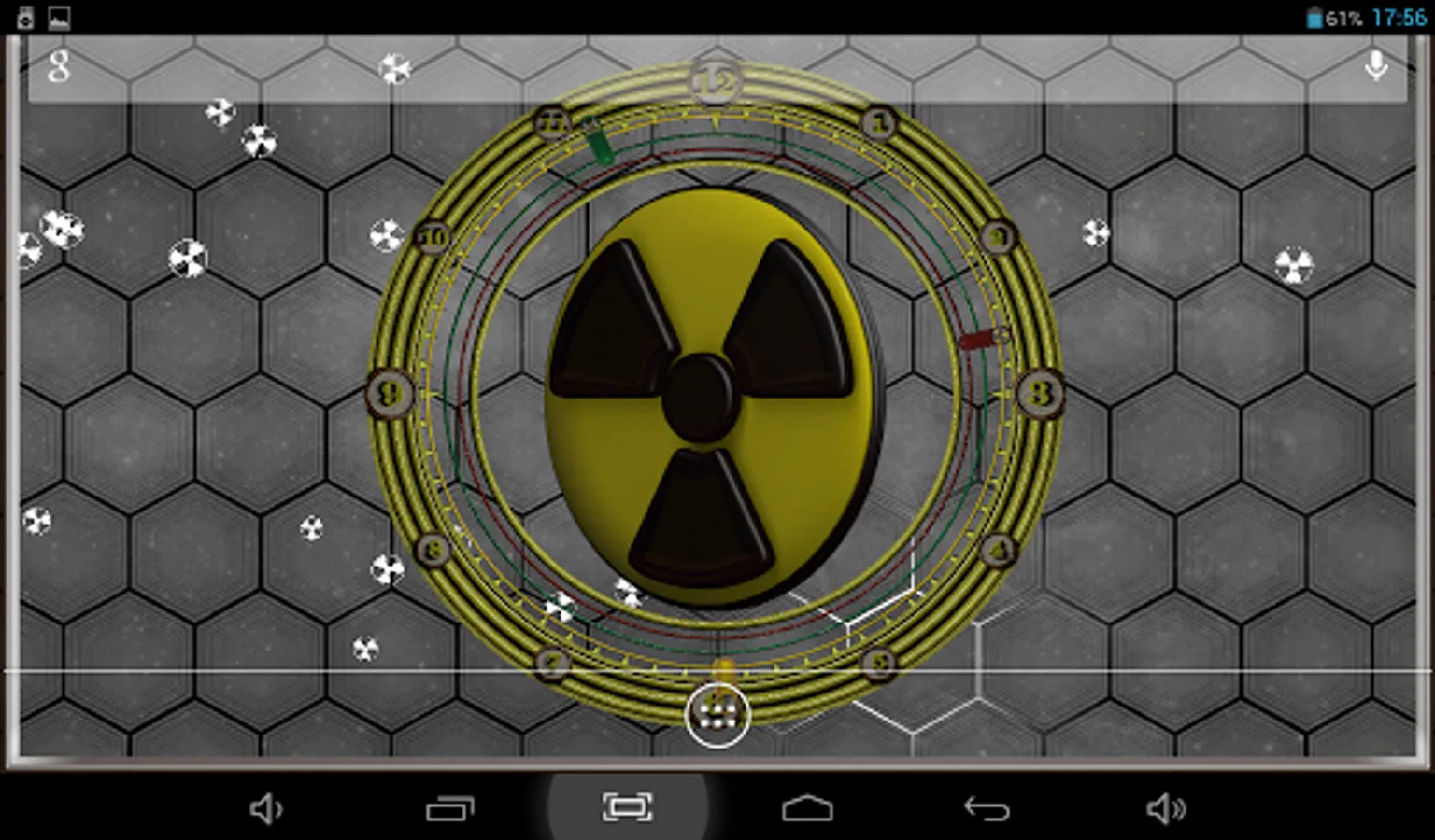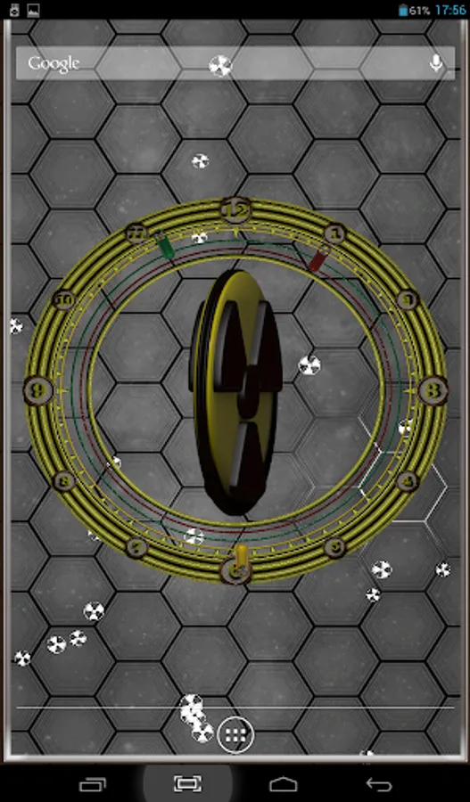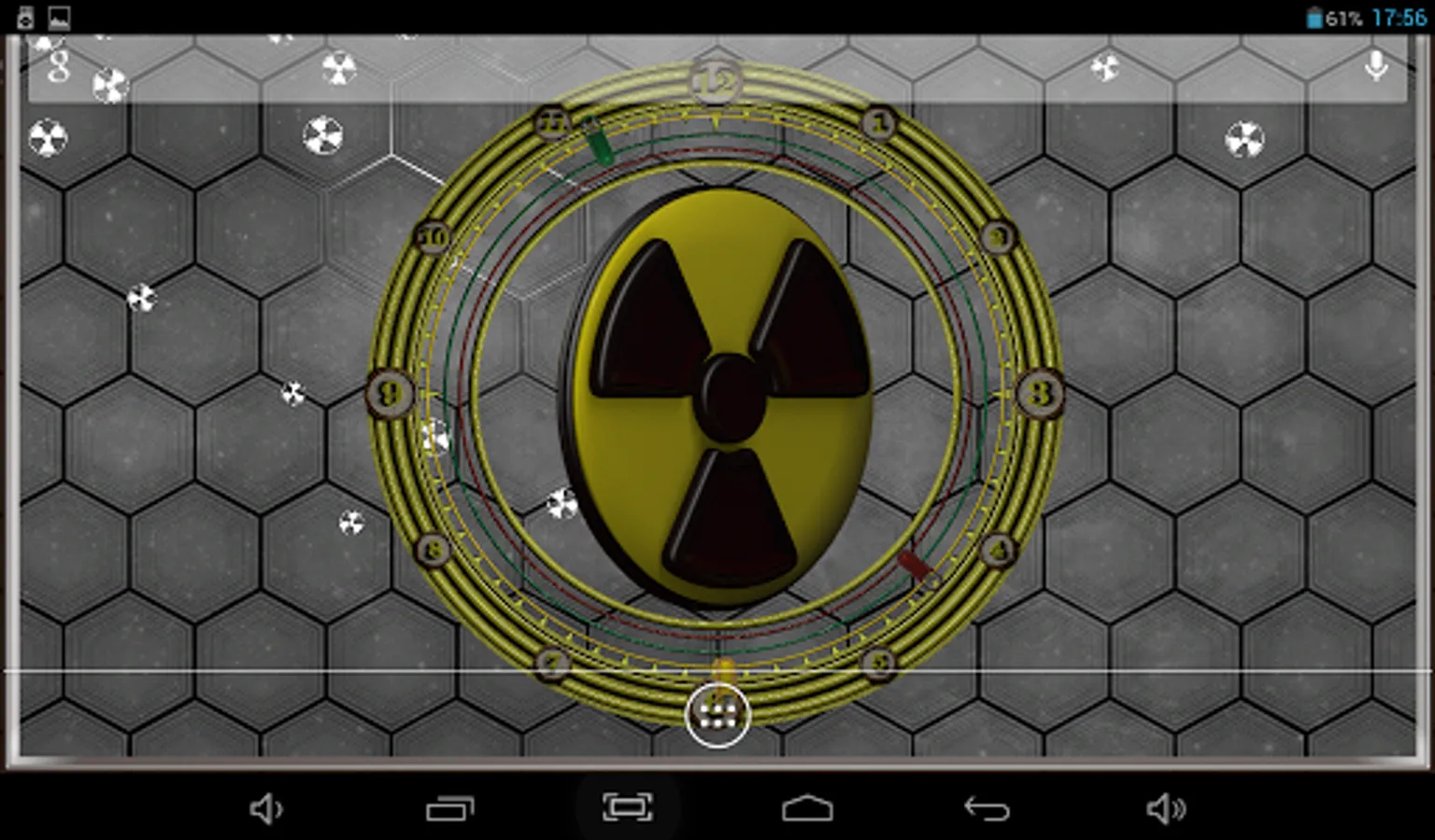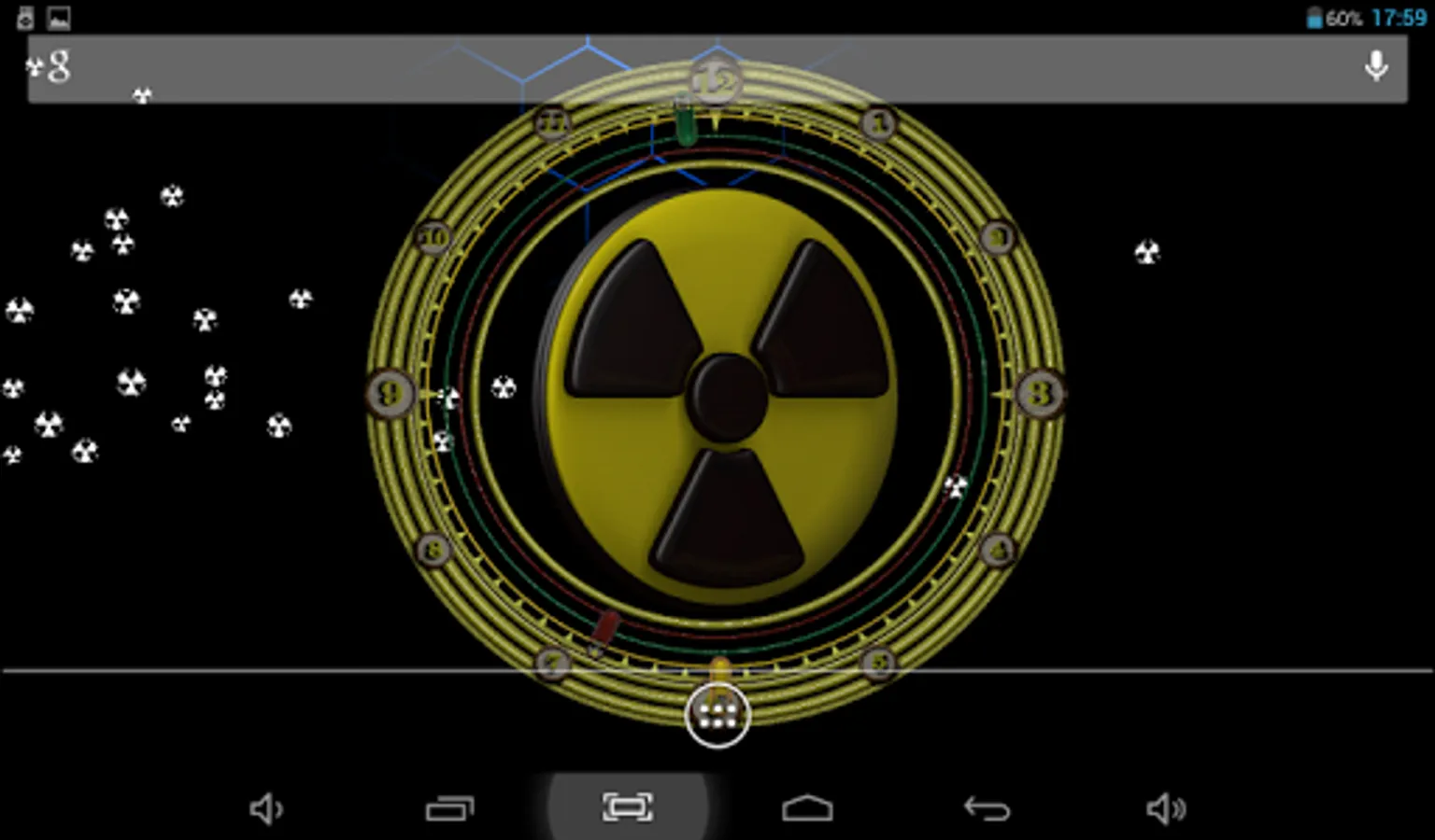3D live wallpaper with radiation symbol and clock function. Rotating radiation sign