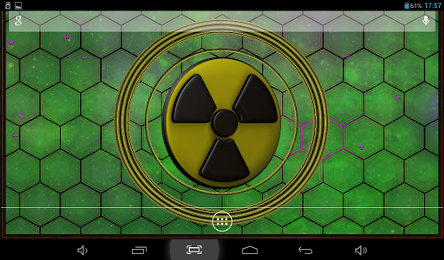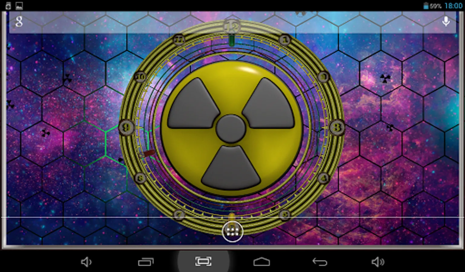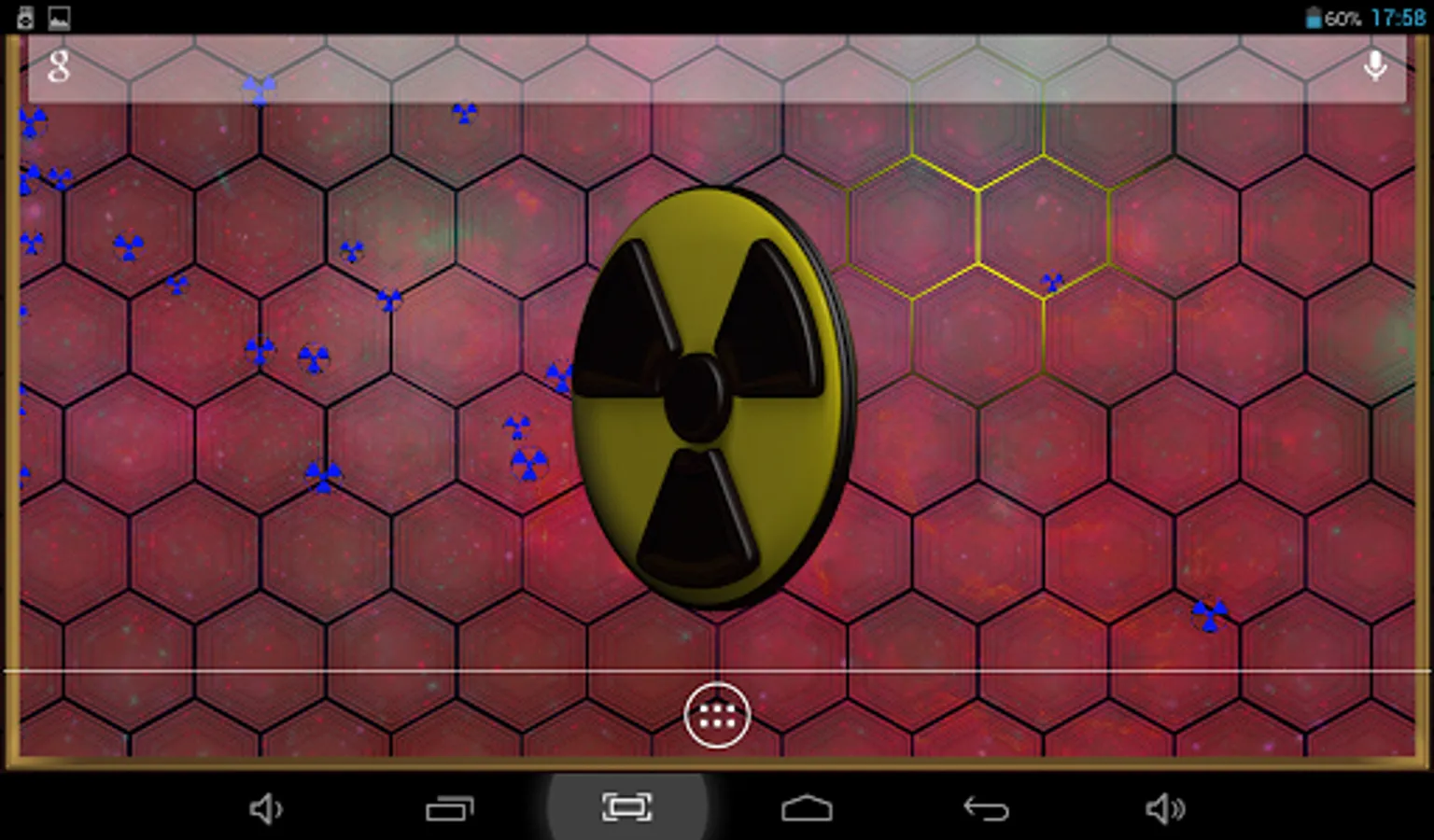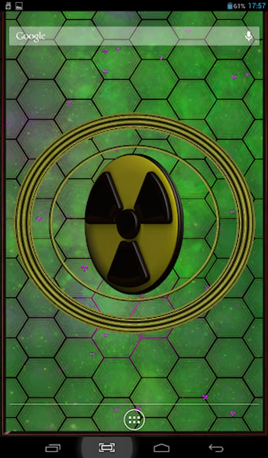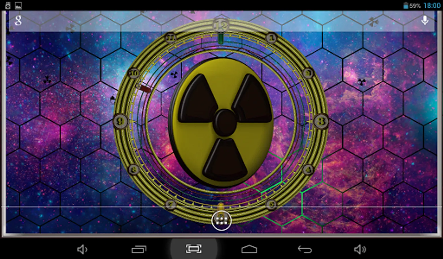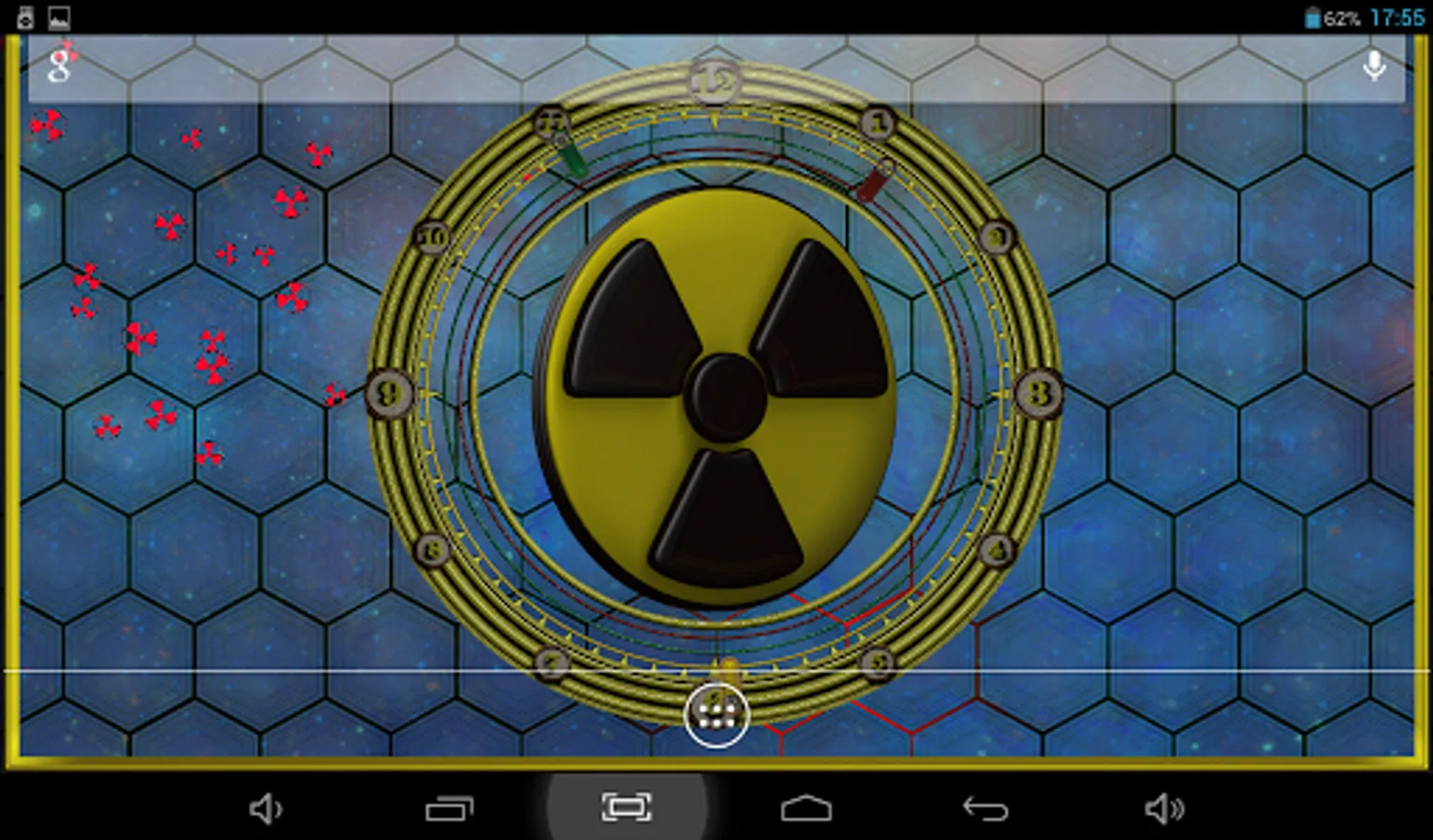 3D live wallpaper with radiation symbol and clock function. Rotating radiation sign