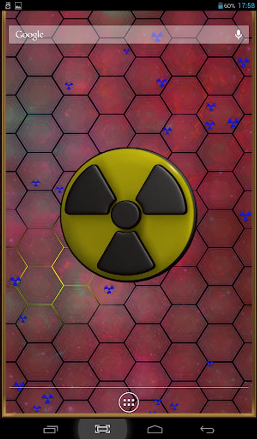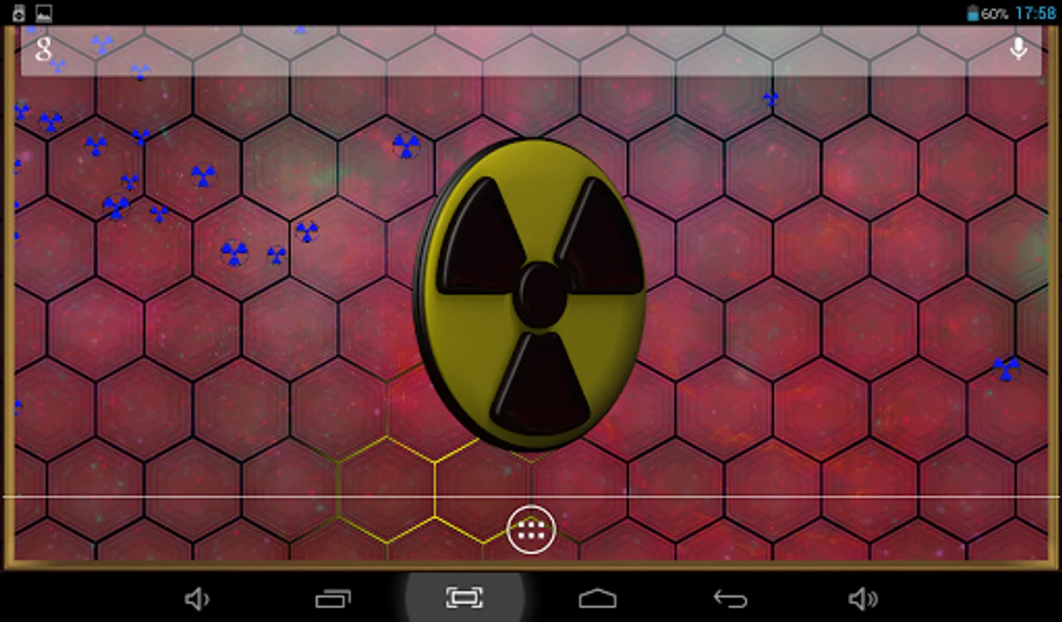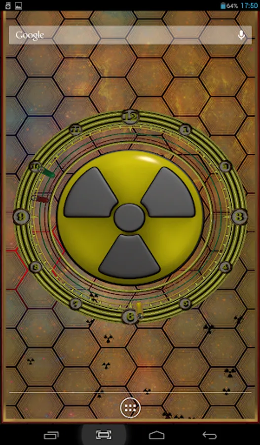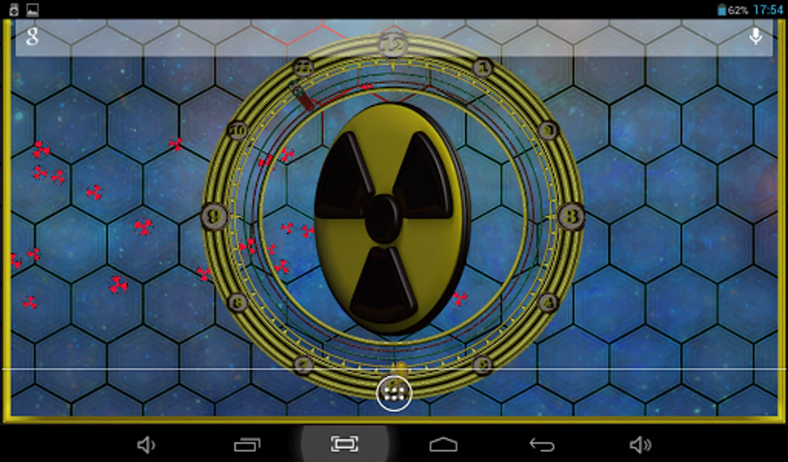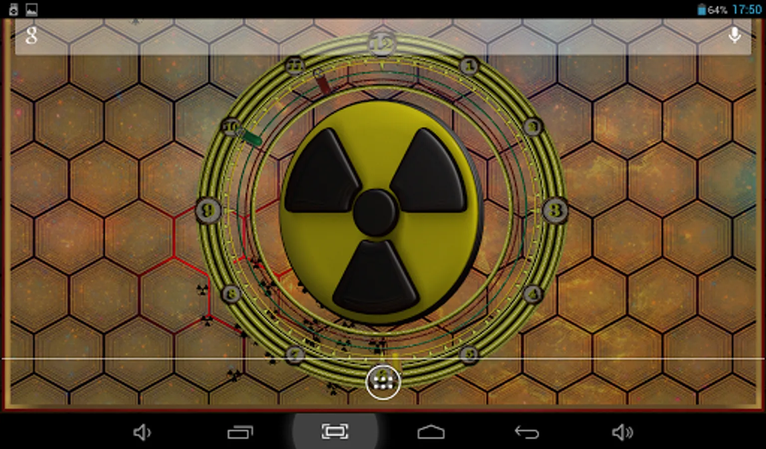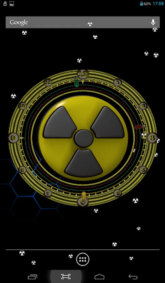 3D live wallpaper with radiation symbol and clock function. Rotating radiation sign