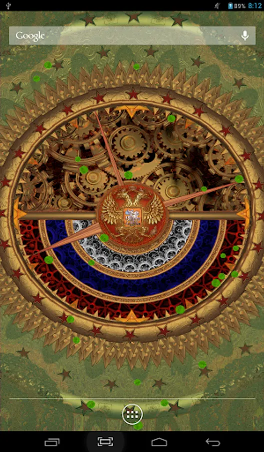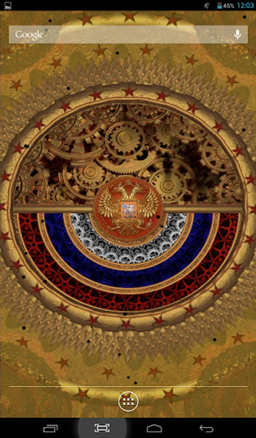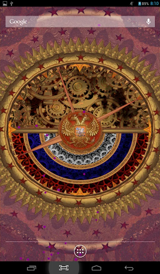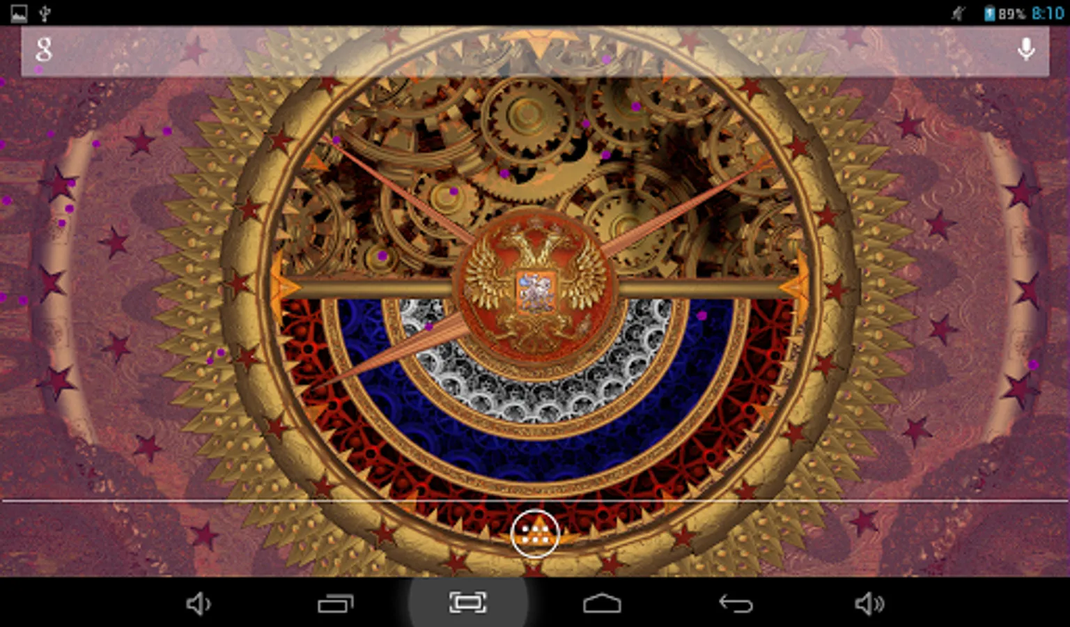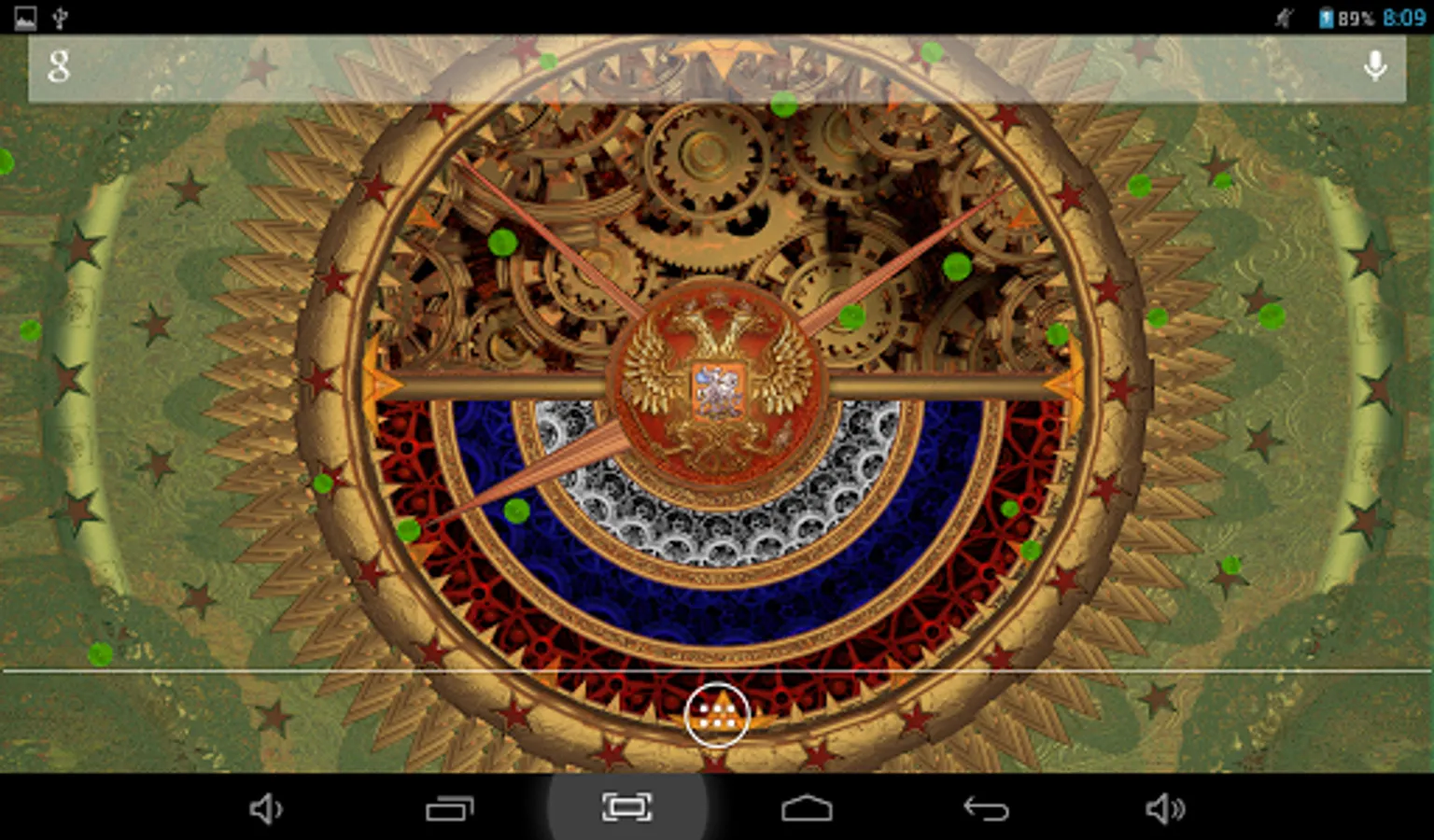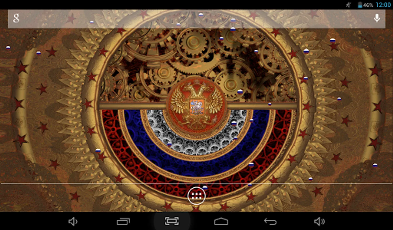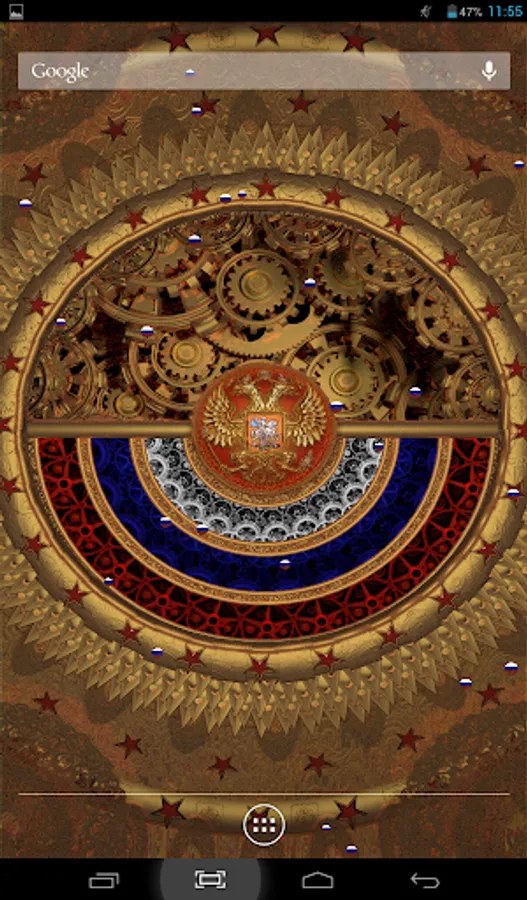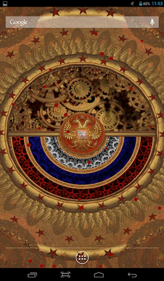Russian coat of arms, rotating gears, needles and clock function. You can choose color of background plate, number of needles and speed of it rotation, color, number and type of behavior of dust, flying above. Beautiful and original wallpaper for your device!