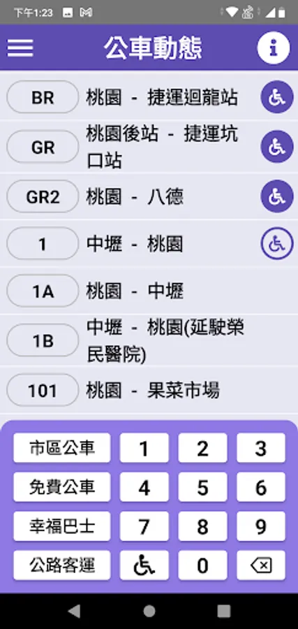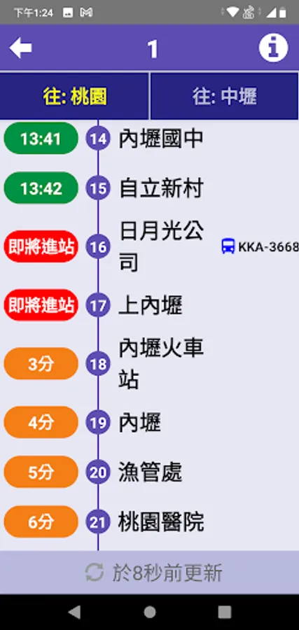 1. Provide real-time dynamic information of urban buses in Taoyuan area.