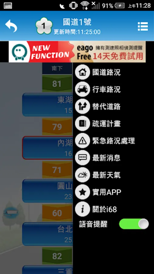 [I68 real-time road conditions] In order to enable drivers to easily grasp road conditions, it provides estimates of the shortest travel time for national one and national three, as well as complete alternative road information for your reference before traveling.