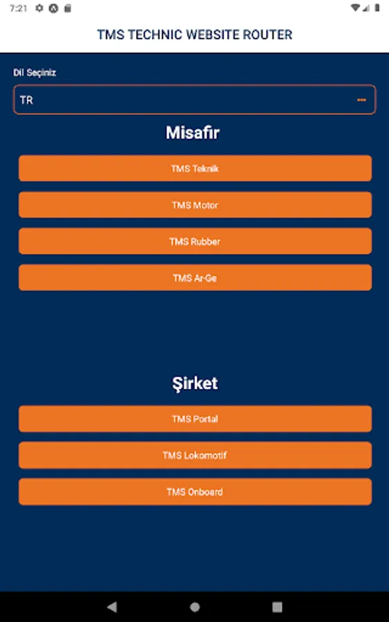 TMS Train Maintenance and Repair Inc. It provides access to all websites within its body. You can easily have preliminary information about our company by visiting all the sites in the application. There is a language option in the application.