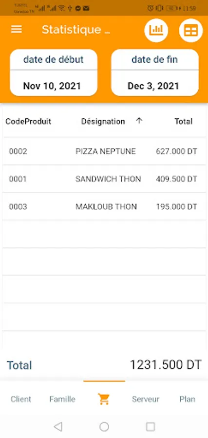 - Total Sale, Sale by Product, Sale by Product Family, Sale by User.