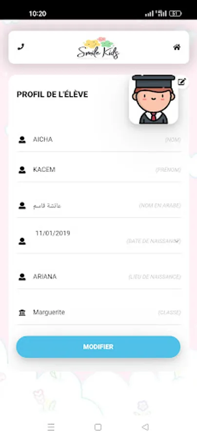 Smile Kids is a personalized application for nurseries, school nurseries or preparatory schools. Smile Kids allows parents to track in detail the nutrition, hygiene, educational exercises, and many other features of their children. Reminders and notifications are scheduled and sent by the administration to keep the parent informed of new developments. The establishment will have a complete manager for the management of the children, the cash register, the activities, .... Since Smile Kids, the mistress or the master will be able to go directly with the parents of his classes.
