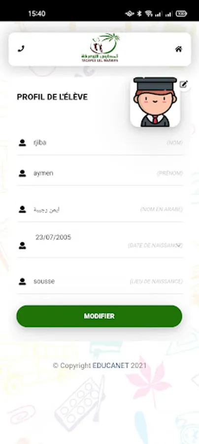 The TACAPES LEL MAARIFA mobile application allows parents to be next to their child: follow educational activities, receive advice from the school framework, be up to date for cultural and sporting events. Contact the school administration, receive grade reports, .... TACAPES LEL MAARIFA Mobile is to be informed where you are ... Dear parent TACAPES LEL MAARIFA download TACAPES LEL MAARIFA Mobile and enter your username and password available by sms or at the school administration.