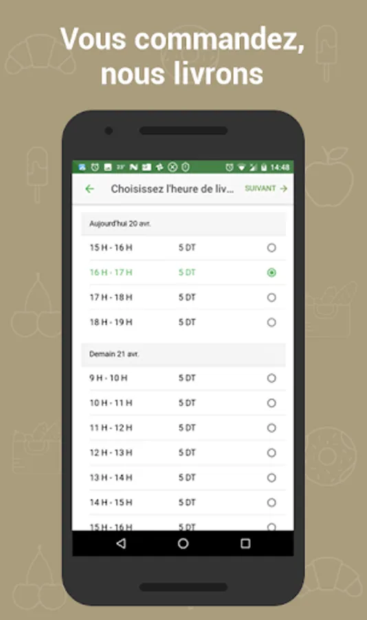 Livri is a delivery service of supermarket shopping. Currently, we serve the area of El Menzah (The Menzah 1 to 9, Les Jardins d'El Menzah Ennasr El Manar Mutuelleville). Download the app and enter your address to see if we serve.