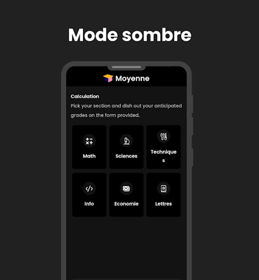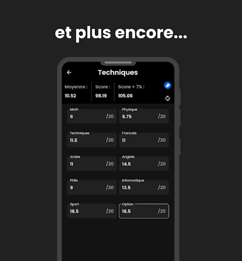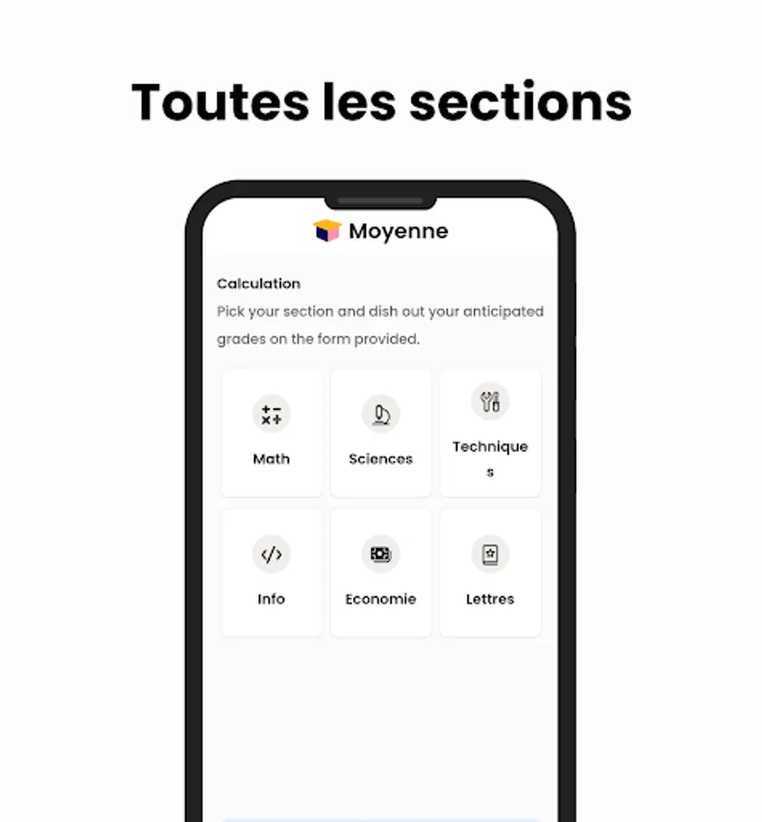 Moyenne est une application simple qui permet aux élèves de prévoir et de calculer leurs moyennes et leurs notes au concours du baccalauréat en Tunisie.