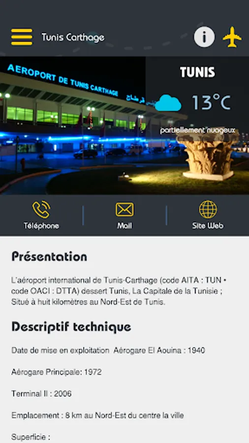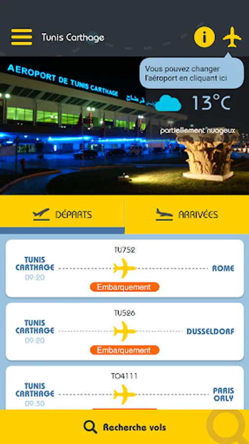 Tunisia Airports is the mobile application of the Office of Civil Aviation and Airports (OACA) developed by Orange Developer Center.