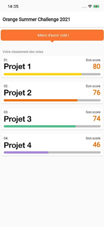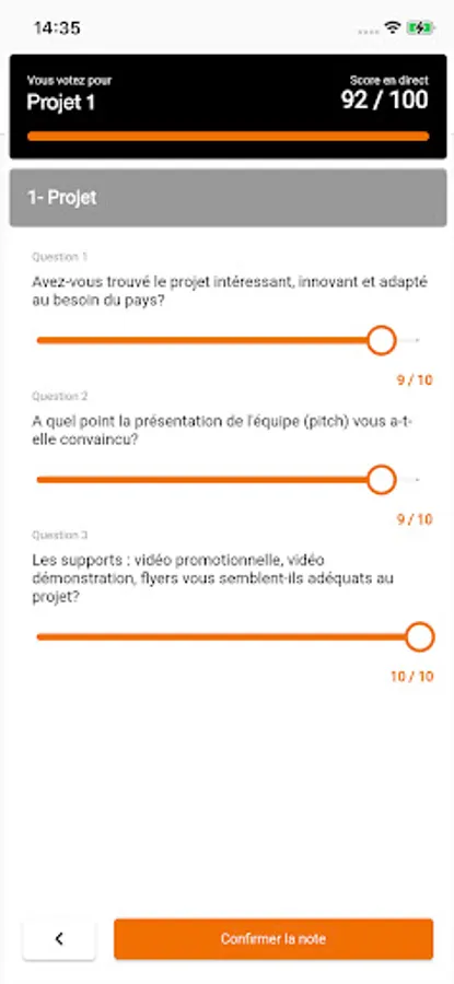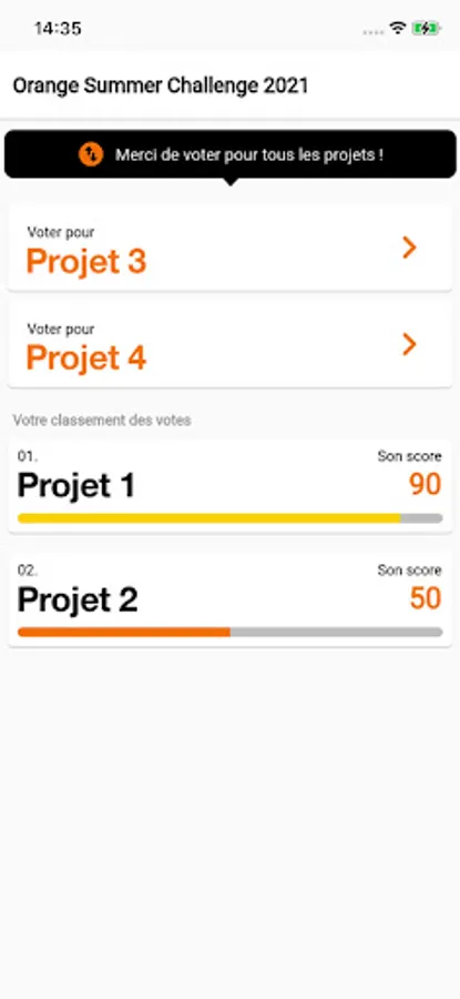 Application de vote pour choisir selon des critères d'évaluation, le projet le plus innovant.