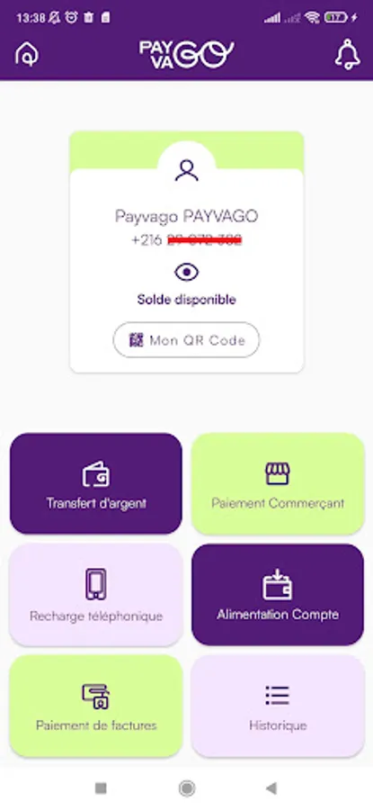 Payvago allows customers to carry out several remote payment operations by mobile 24/7: ● Opening a Level N1 (500 TND) or Level N2 (1000 TND) payment account remotely (full digital ) and Level N3 (5000 TND) by going to a Payvago branch.