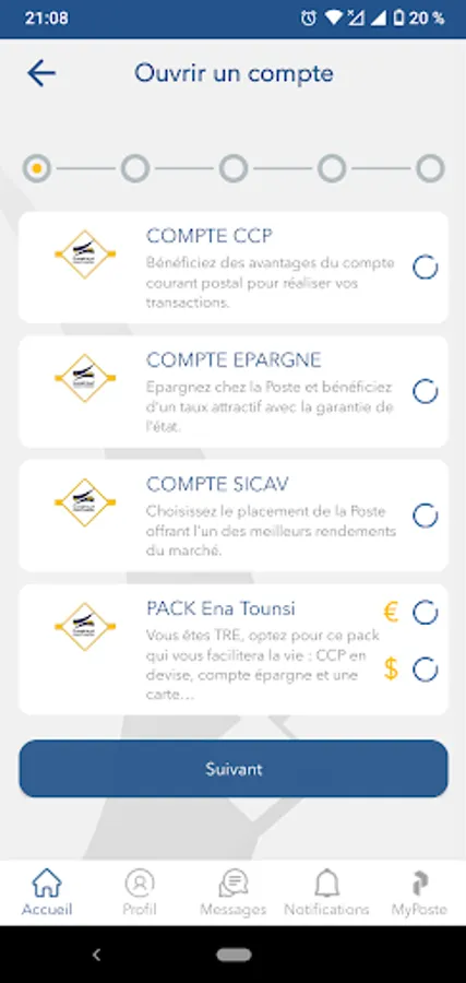 - Follow your accounts opened at La Poste: CCP, Epargne and SICAV