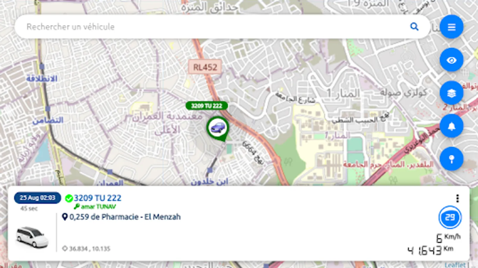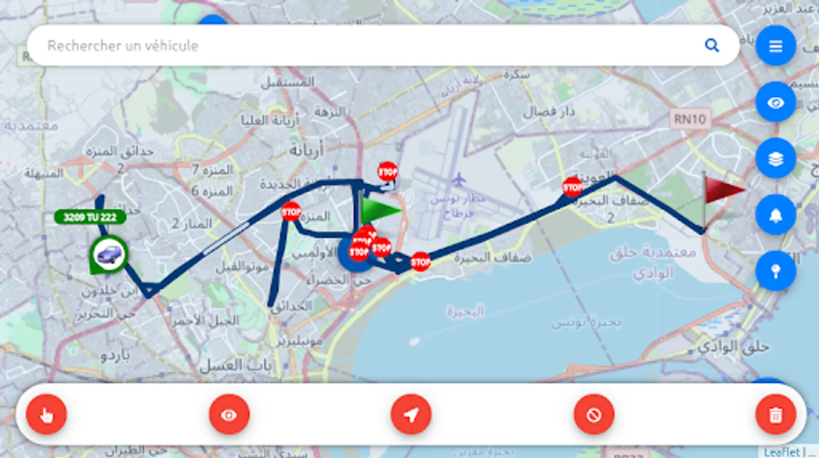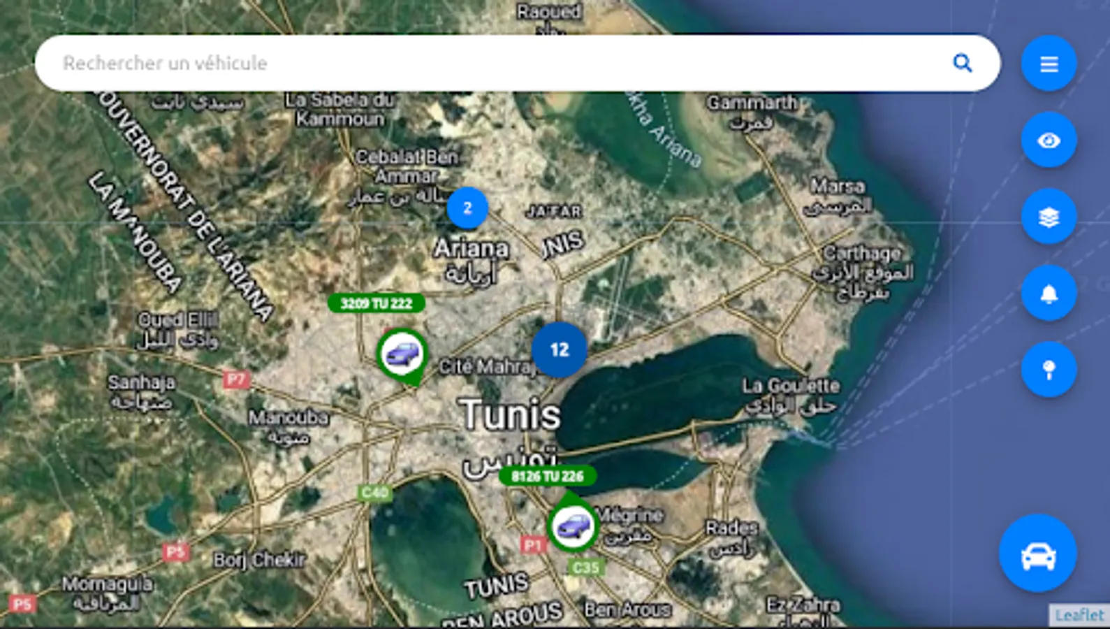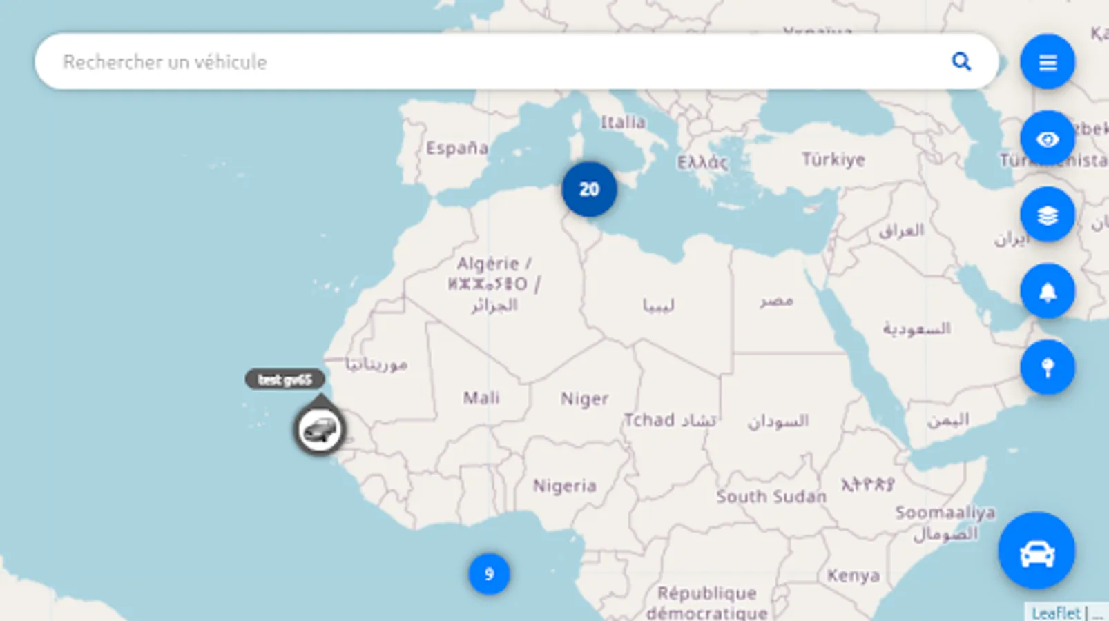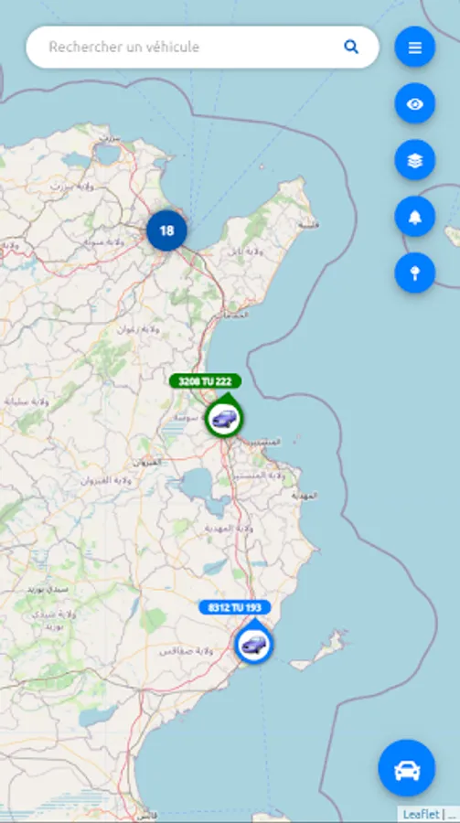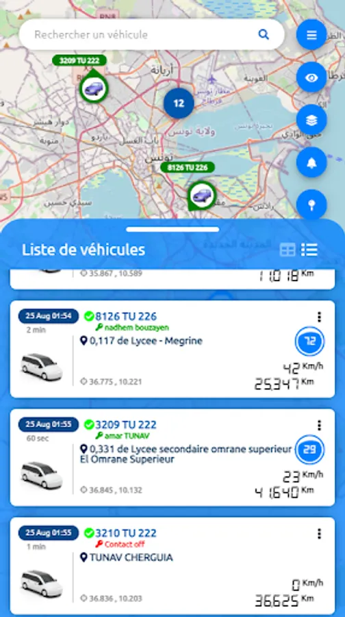 • Real-time monitoring of the fleet on a geographic map.