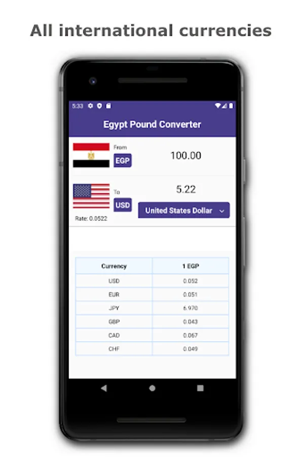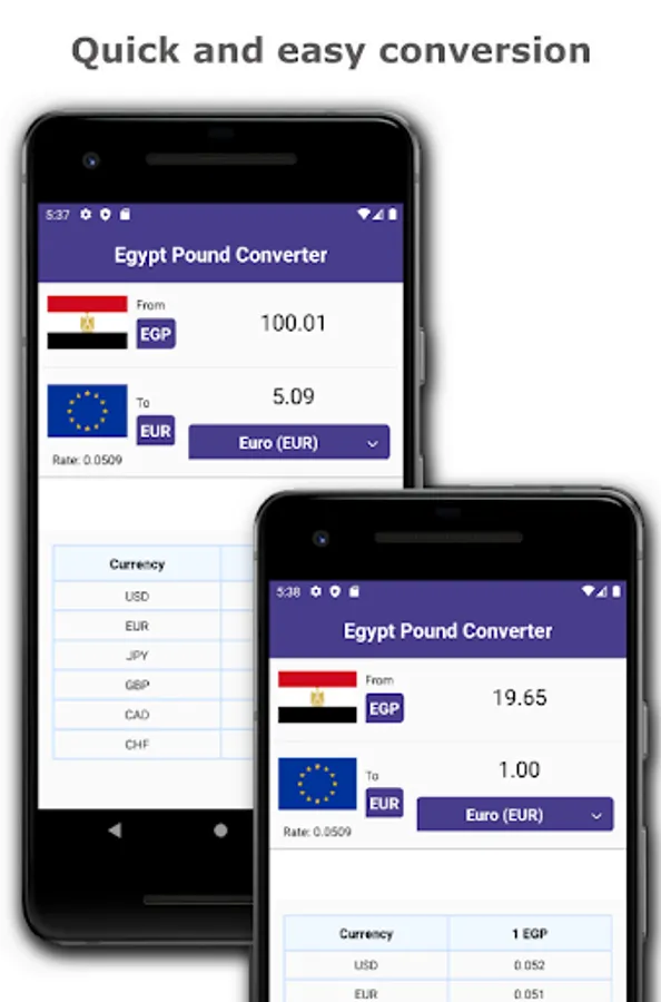 Go straight from the Egyptian Pound to all other currencies and any currency to the Egyptian Pound directly and with one click.