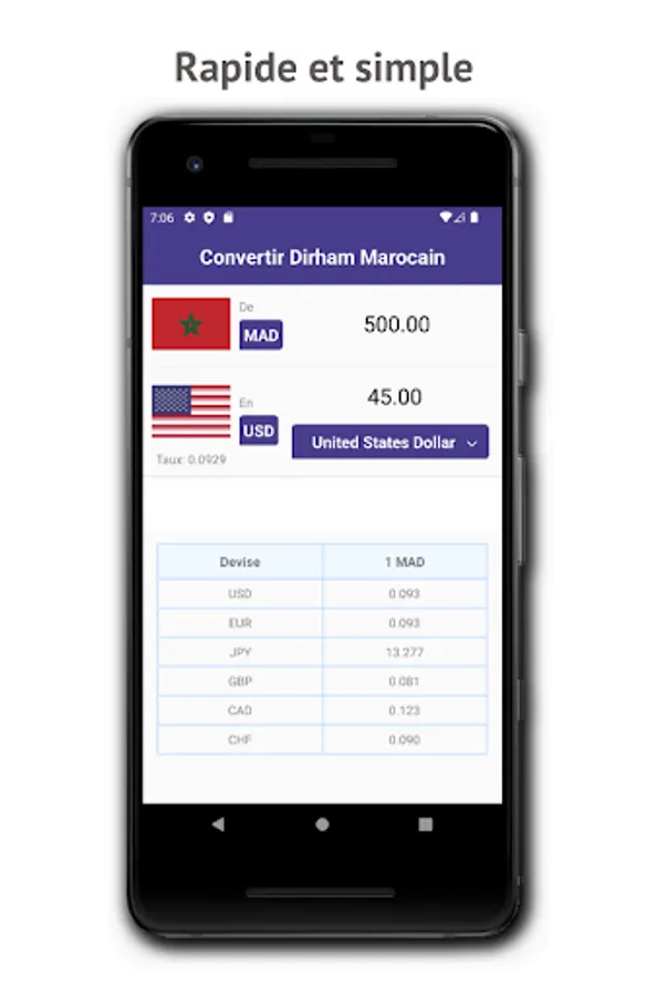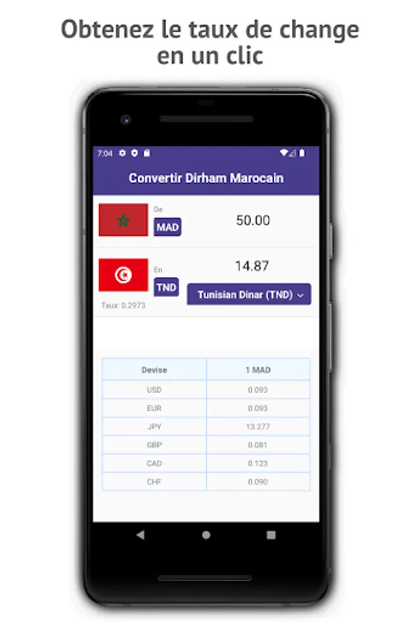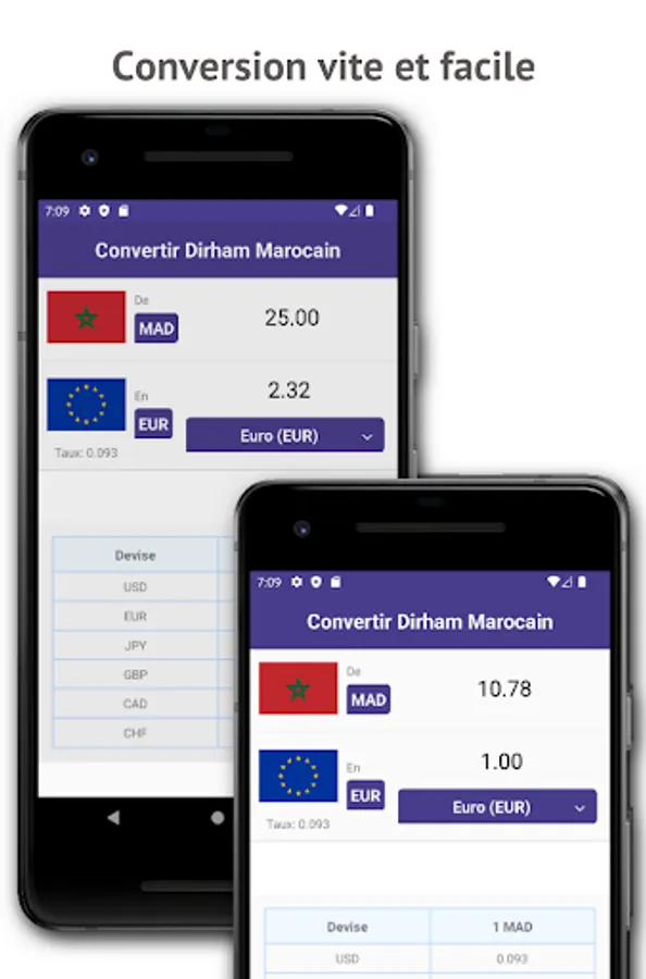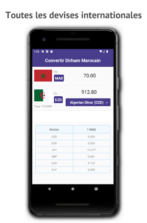_ Switch directly from Moroccan Dirham MAD to all other currencies and vice versa with just one click.