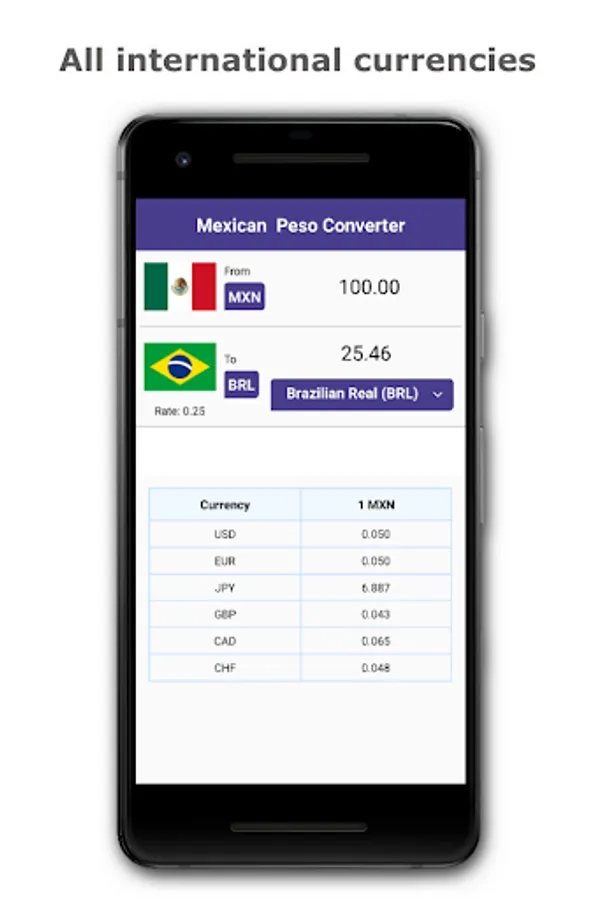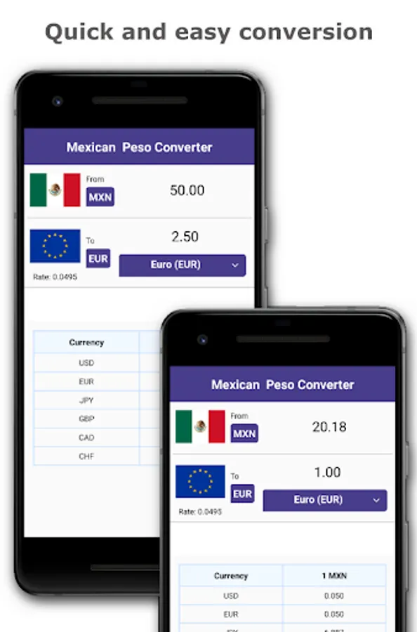 Go straight from the Mexican Peso to all other currencies and any currency to the Mexican Peso directly and with one click.