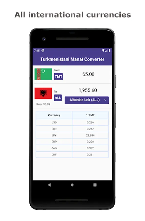 Go straight from the Turkmenistani Manat to all other currencies and from any currency to the Turkmenistani Manat directly and with one click.
