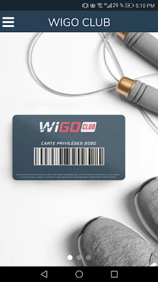 The Wigo Club application offers its users the Wigo Club Privileges card, which is a digital card entitling its holders to take advantage of permanent discounts throughout the network of partner brands in the world of fitness and well-being.