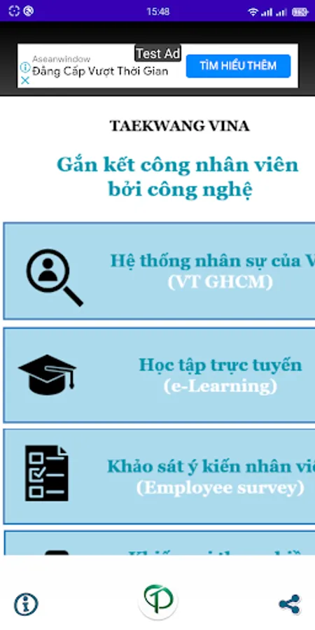 View salary, bonus, timekeeping, leave status, important announcements of Taekwang company.
