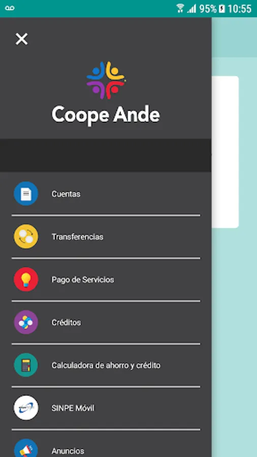 From Coope Ande en Línea you can customize the services that you want to see and use in your mobile application, for this the following options will be displayed: