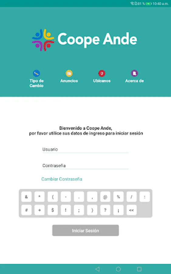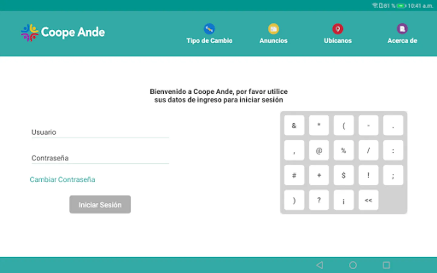 To access Coope Ande Móvil and enjoy its financial services, you use the same code as "Coope Ande en Línea", our transactional website. If you have not yet requested it at the agency of Coope Ande of your convenience.