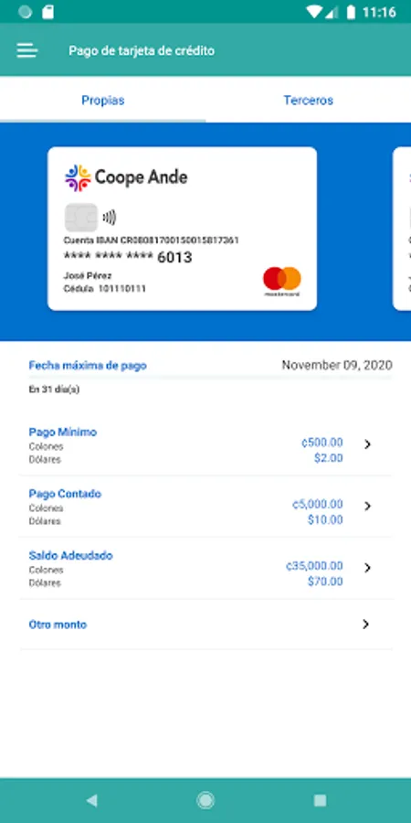 • Pay for services on your favorite list in "Coope Ande en Línea"