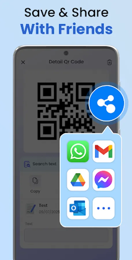 Simple sharing: Save or share your created QR codes via email, social media, or other apps.