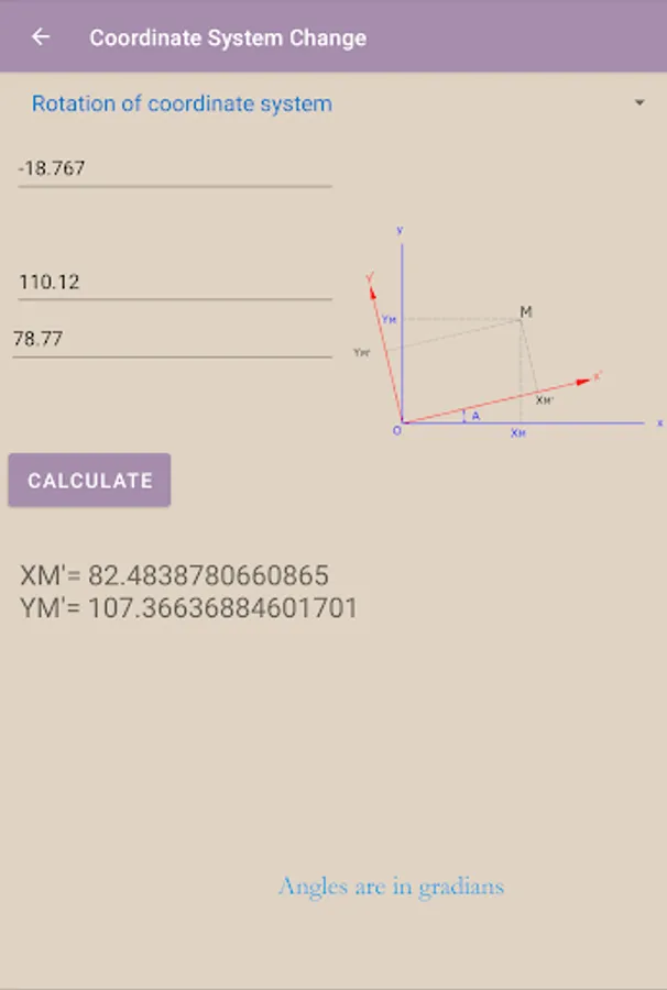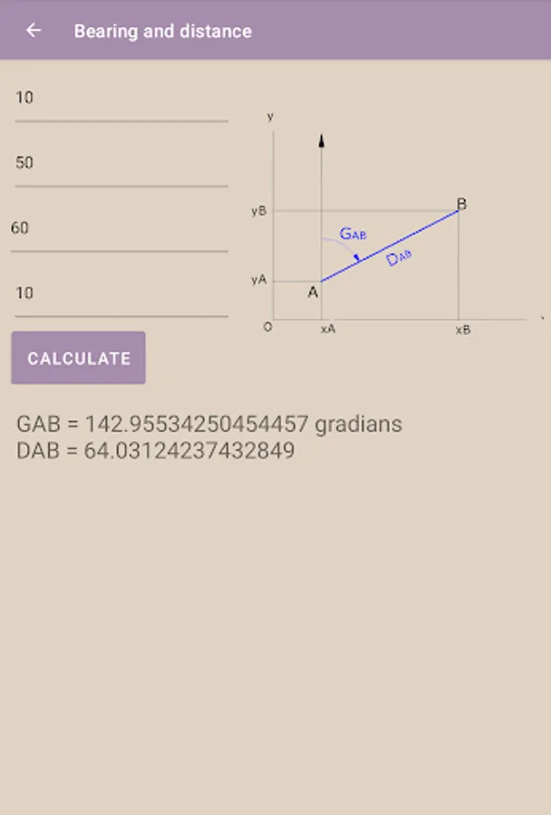 Important Note: All angle values you enter in the app must be in gradians. If you enter angles in other units, the results will be incorrect.