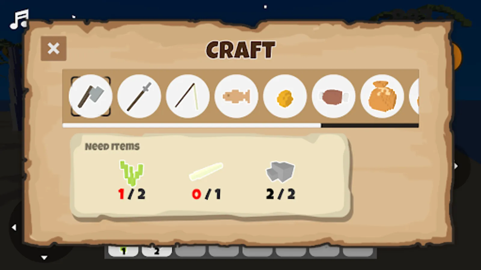Craft useful tools and dishes by combining items that have fallen on the island.