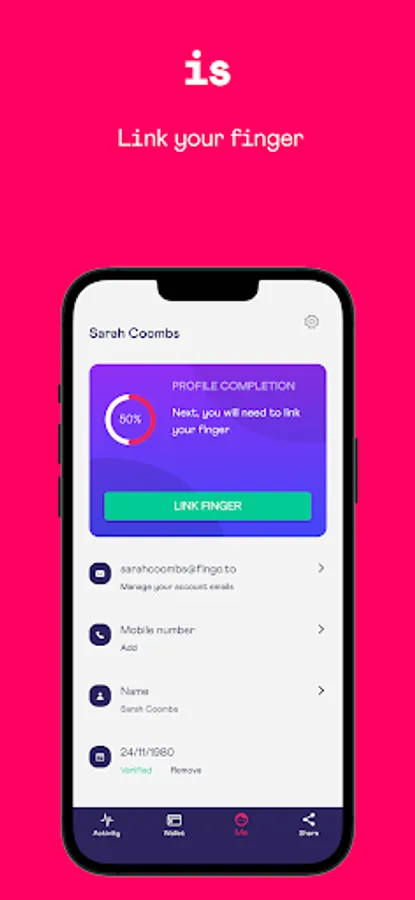 Ready to leave cards, cash and ID behind? When you sign up to FinGo you’ll be able prove your age or make a payment, all with a single scan of your finger – anywhere you see the FinGo sign. All you need to do is scan in your ID – this could be a passport, driver license or national ID card, and add a payment card.
