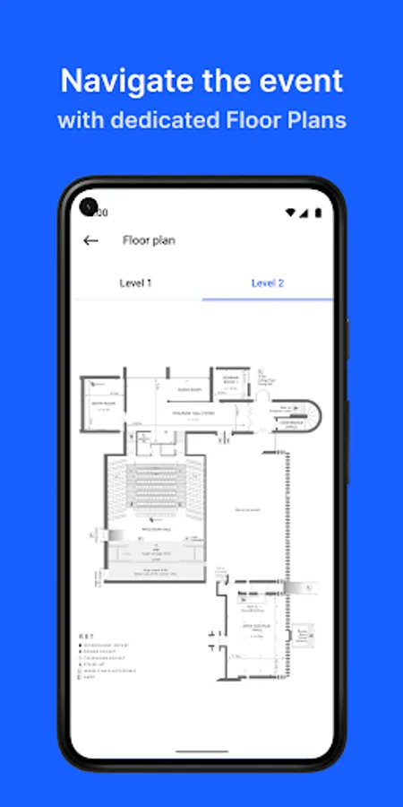 Easily find your way around the in-person event venue by accessing floor maps. Never get lost at an event again.