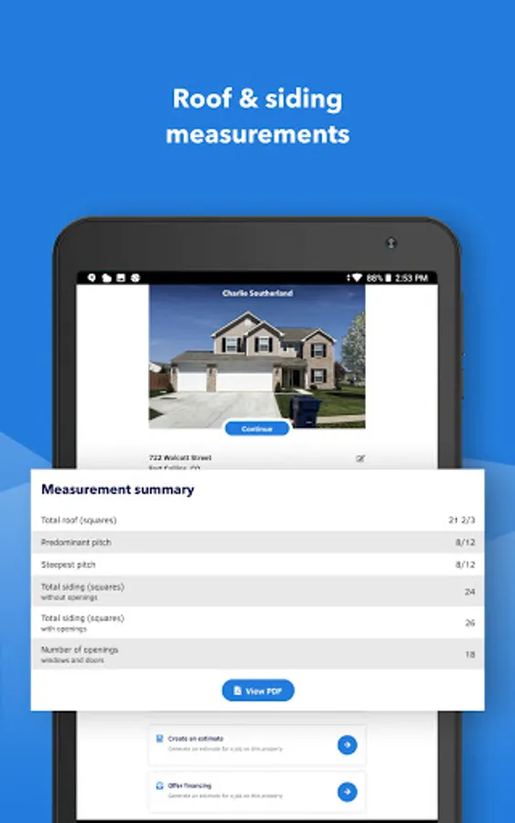 Put down the calculator and get more than just roof squares. HOVER delivers surface area and linear feet for materials like siding, soffit, fascia, gutters & downspouts, and more.