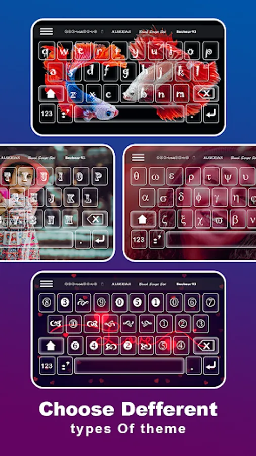 :- Fully custom keyboard with wallpaper and layout with GIF & Stickers