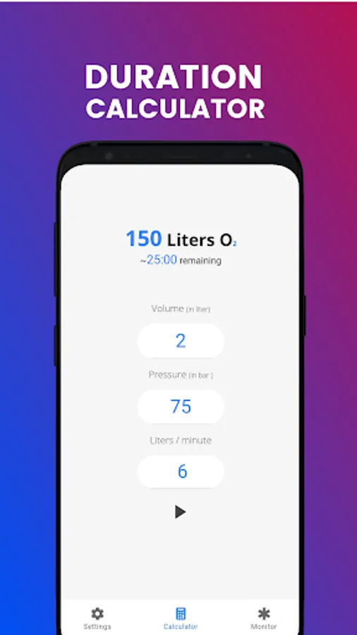 That's it, O2Monitor, an easy oxygen duration calculator!