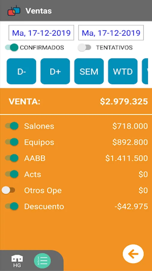 You can access the sales of the event center by category, check availability of rooms online, access the personnel assigned to the events, see confirmations and cancellations between dates, and also see the publications with last minute changes for an event.
