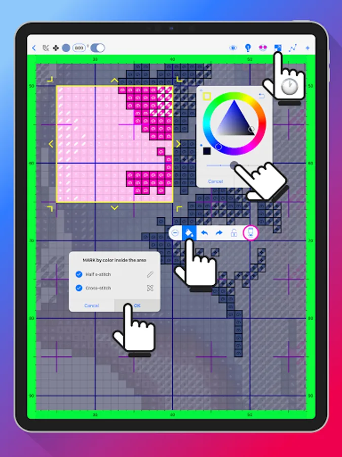The mobile assistant of advanced cross-stitchers. Created for easy reading and markup of cross-stitch patterns, to speed up the needlework process🚀.
