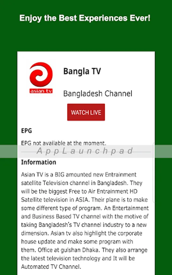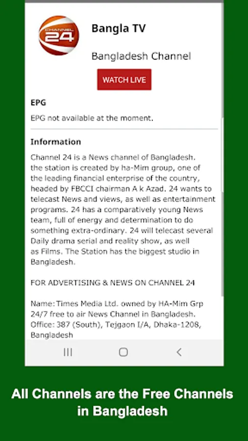 100% Official Android app of Bangla HD TV. BanglaTV is one of the largest resources of Bangladeshi TV channels. Watch Bangladeshi TV channels. Also you get to read Bangla online news papers from the app.
