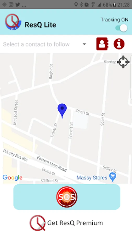 Press the panic button to send an SMS to your emergency contacts.